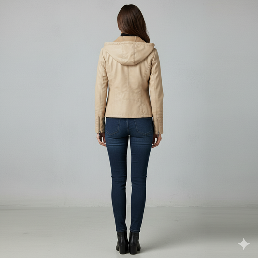 Damen Lederjacke mit Kapuze | Modern & Abnehmbar | Übergang