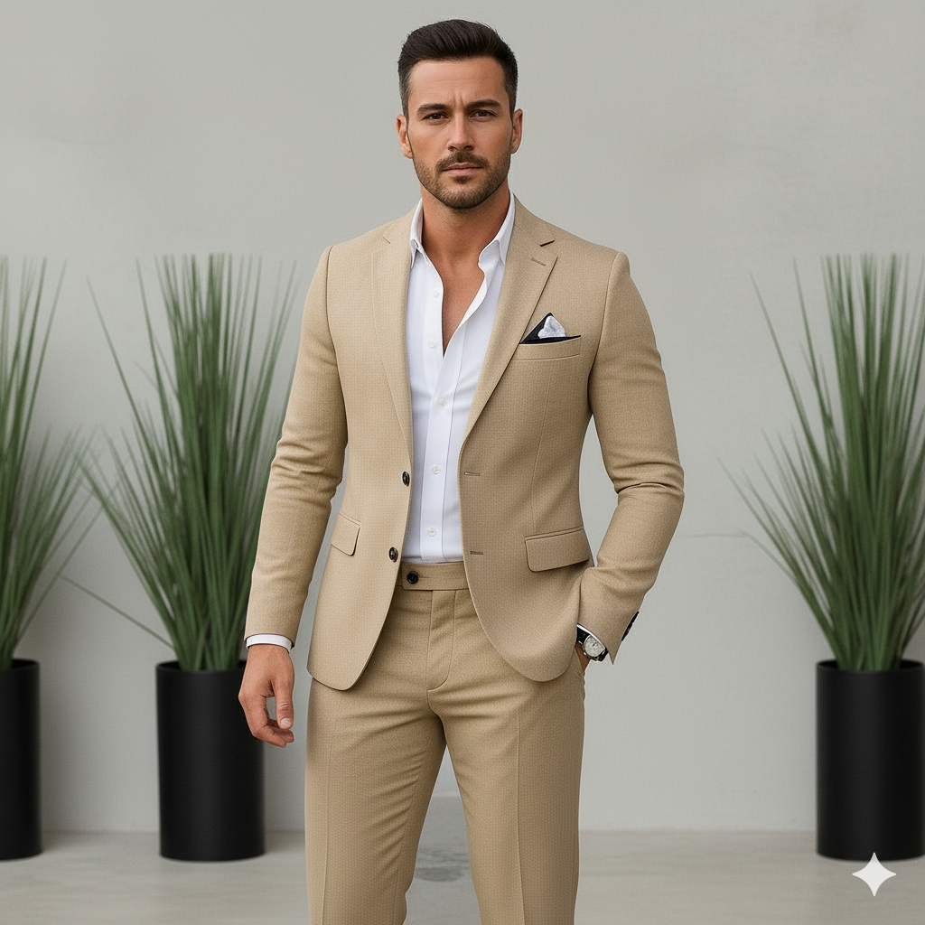 Der Herren Anzug im Slim Fit kombiniert moderne Eleganz mit sommerlicher Leichtigkeit. Das hochwertige Hanf-Mischgewebe sorgt für atmungsaktiven Tragekomfort und eine markante Silhouette – ideal für Business, Events oder den Alltag. Jetzt entdecken und smart auftreten!