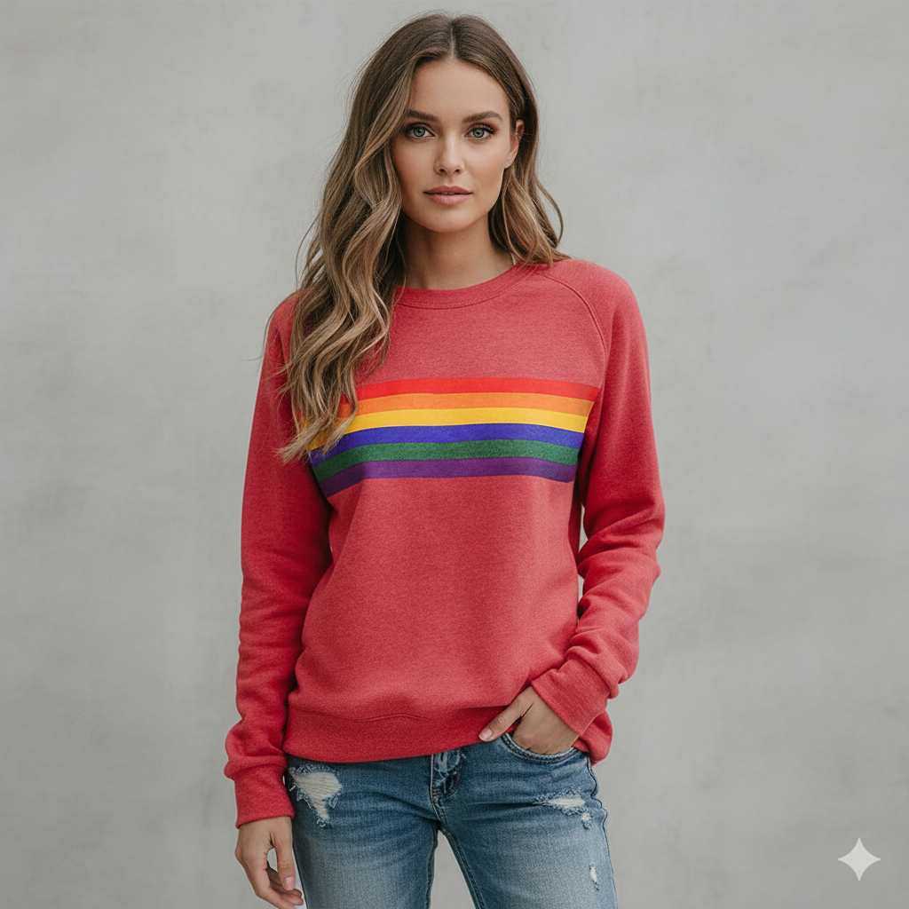 Der Damen Pullover mit Rundhalsausschnitt bringt Farbe und gute Laune in deinen Alltag. Das auffällige Streifendetail verleiht dem klassischen Design einen modernen Twist, während die weiche Baumwolle für hohen Tragekomfort sorgt. Perfekt für Freizeit und Alltag – jetzt entdecken und verlieben!