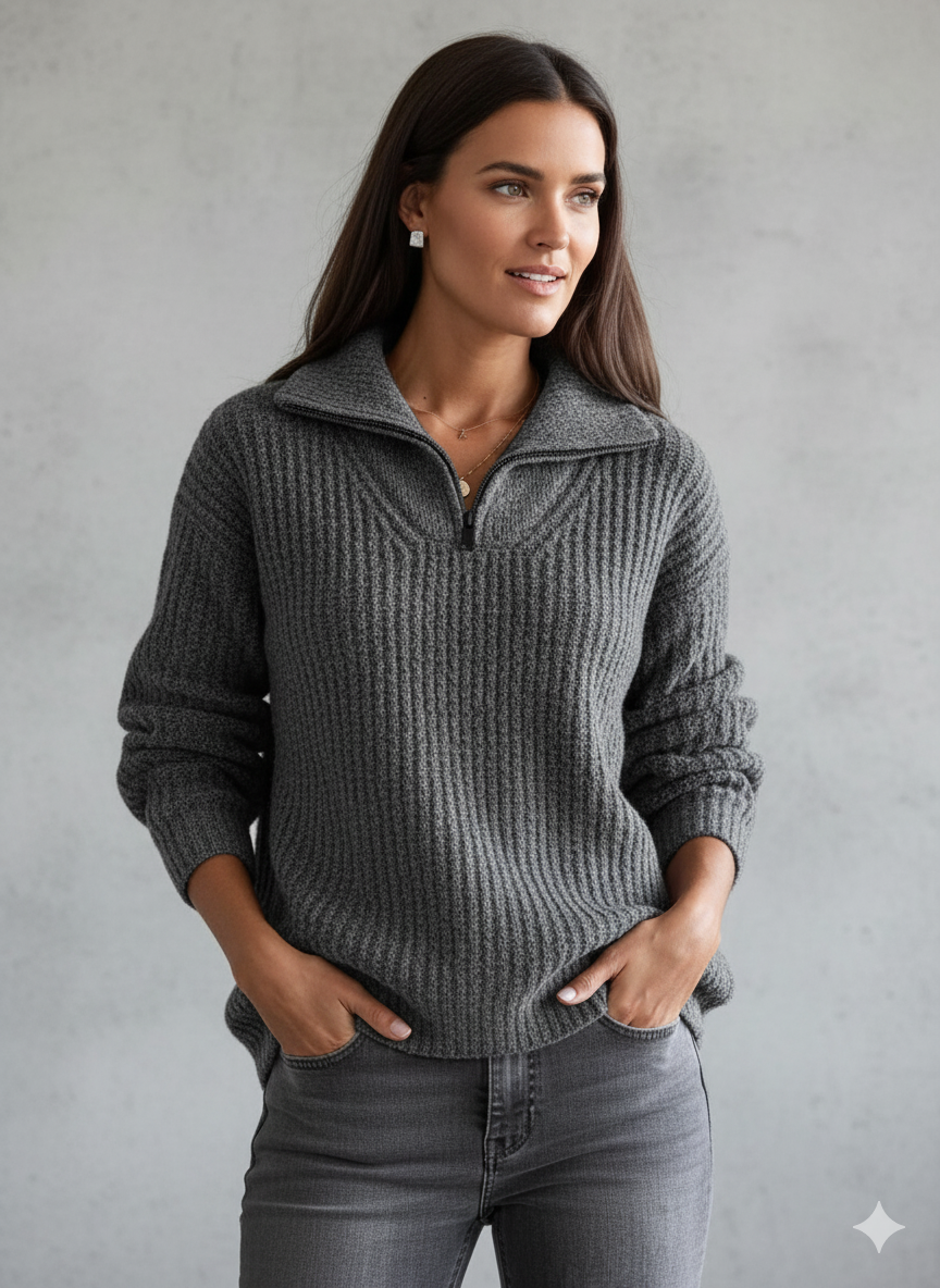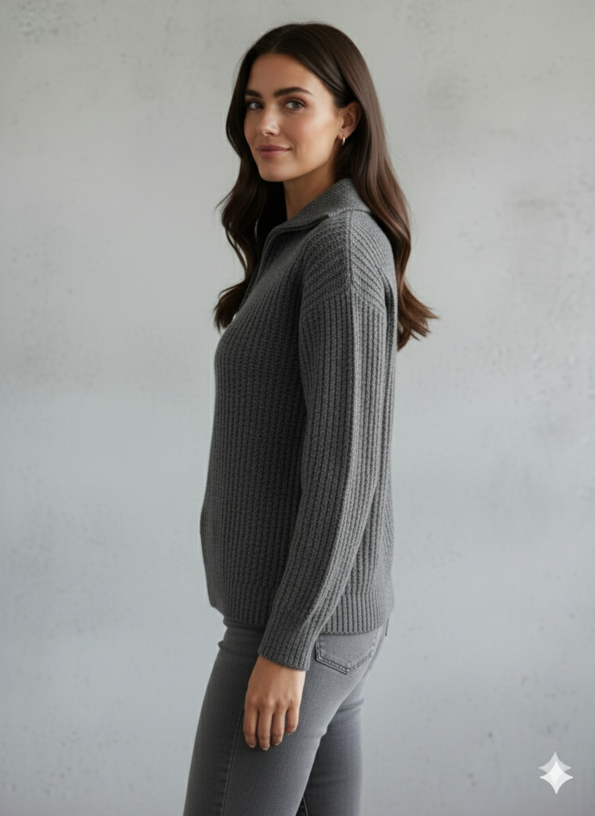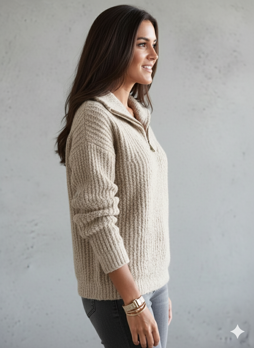 Kuscheliger Damen Strickpullover mit Reißverschluss | Winter
