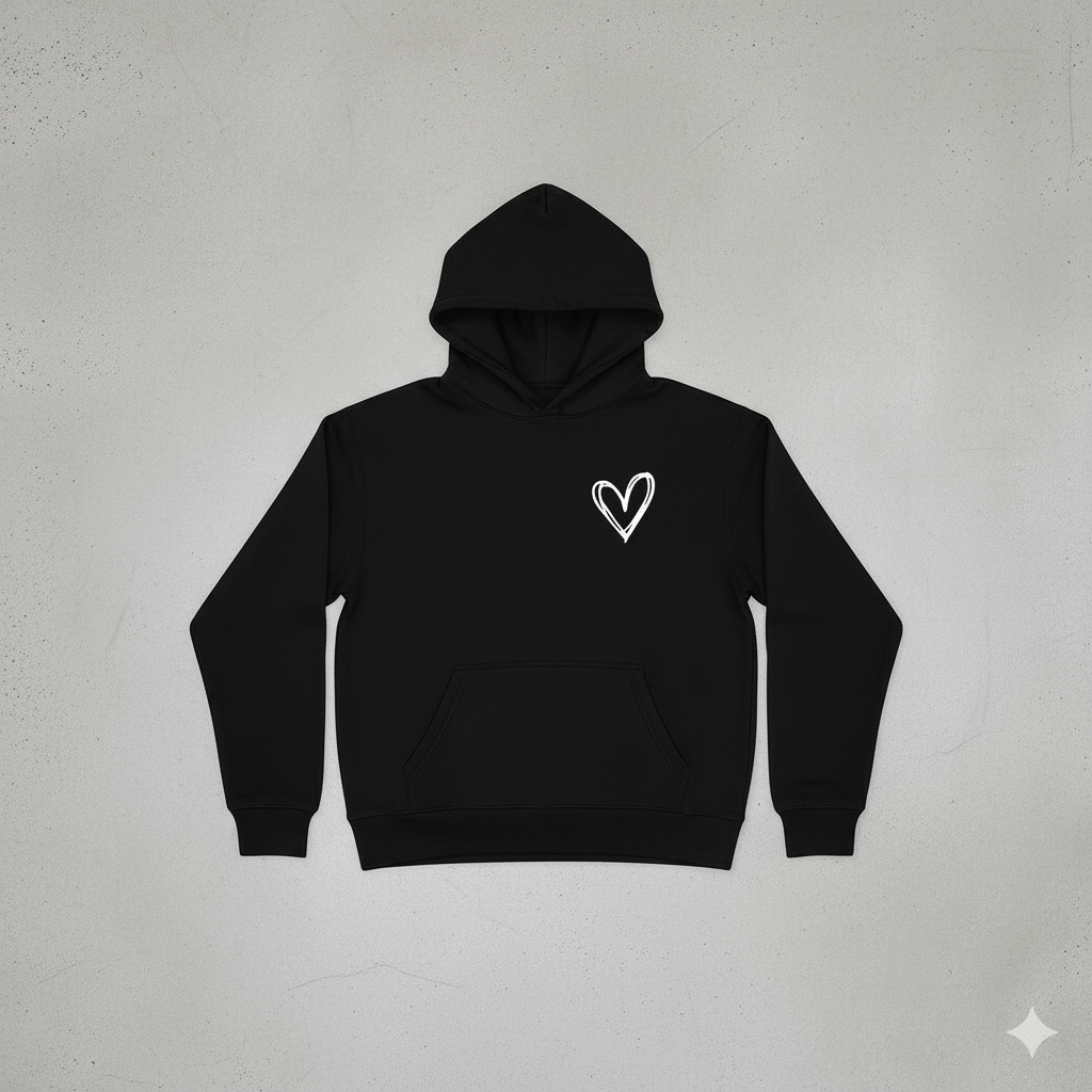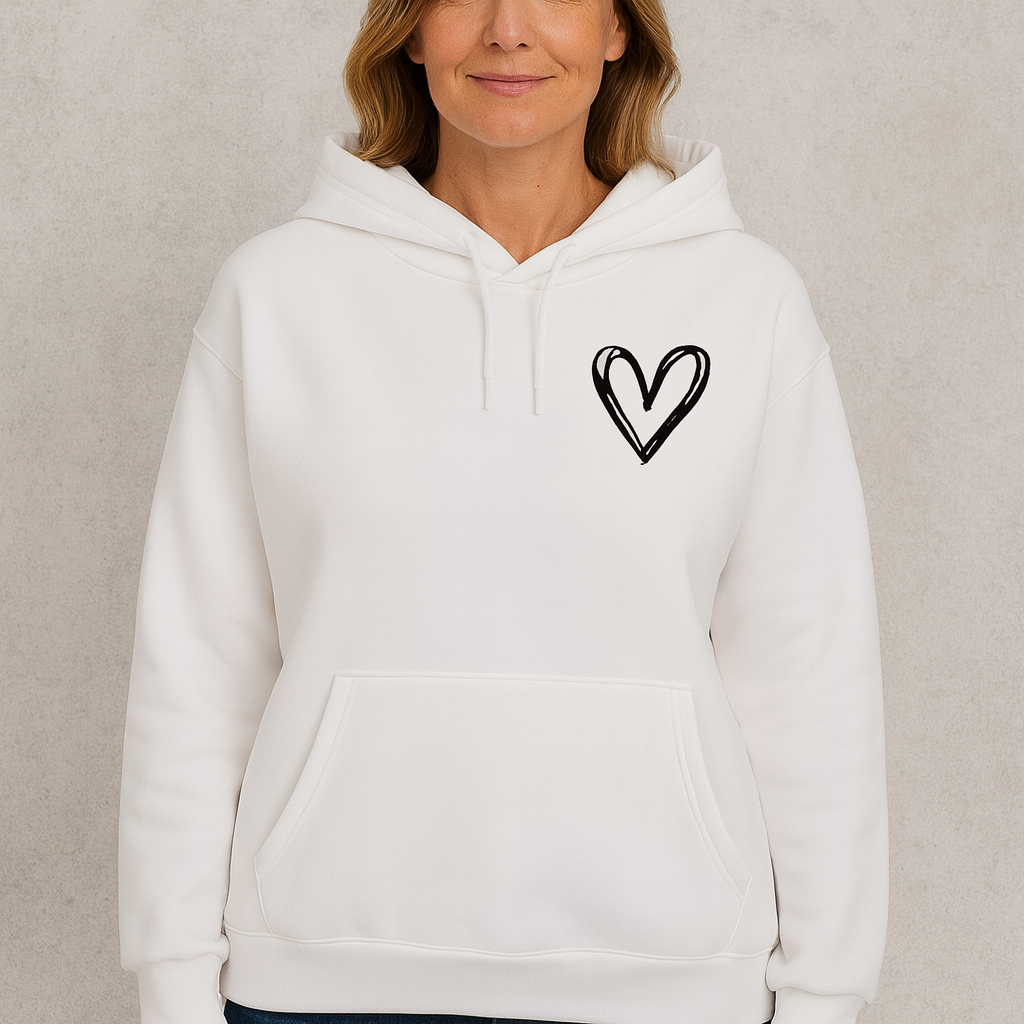 Der schlichte Damen Hoodie mit Herz Print ist dein neues Wohlfühl-Essential mit stilvollem Akzent. Gefertigt aus weichem Material und mit lockerer Passform bietet dieser Kapuzenpullover maximalen Komfort für entspannte Alltagsmomente. Der handgezeichnete Herz-Print setzt dabei einen modernen, persönlichen Touch. Perfekt für deinen Alltag – gleich ausprobieren!