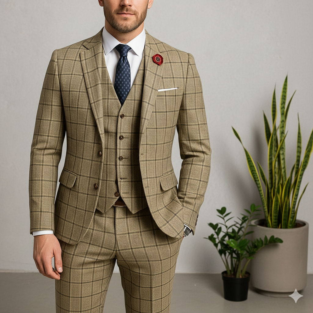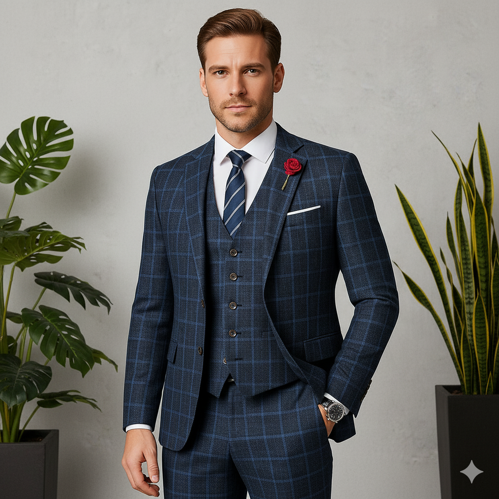 Der Herren Anzug 3-teilig Slim Fit kombiniert klassische Eleganz mit modernem Stil. Das feine Karomuster und das glatte Acetatfaser-Material sorgen für einen souveränen Look und angenehmen Tragekomfort – ideal für Business, Events oder Hochzeiten. Jetzt entdecken und Eindruck machen!