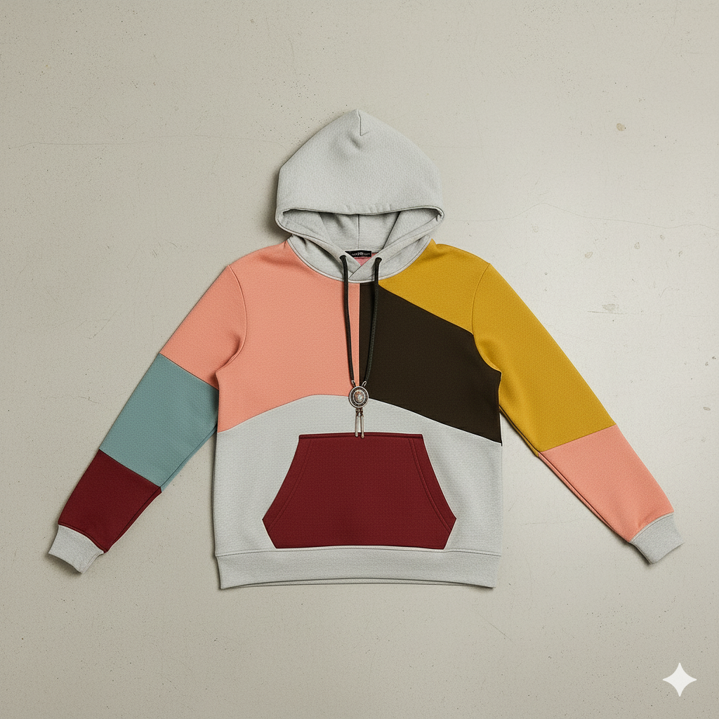 Der Damen Hoodie mit Colorblock Design ist ein lässiger Allrounder, der Style und Gemütlichkeit vereint. Sein modernes Patchwork-Muster in warmen Tönen und die weiche Innenseite machen ihn zum perfekten Begleiter für entspannte Tage. Kapuze und Kängurutasche runden den komfortablen Look ab. Perfekt für deinen Alltag – gleich ausprobieren!