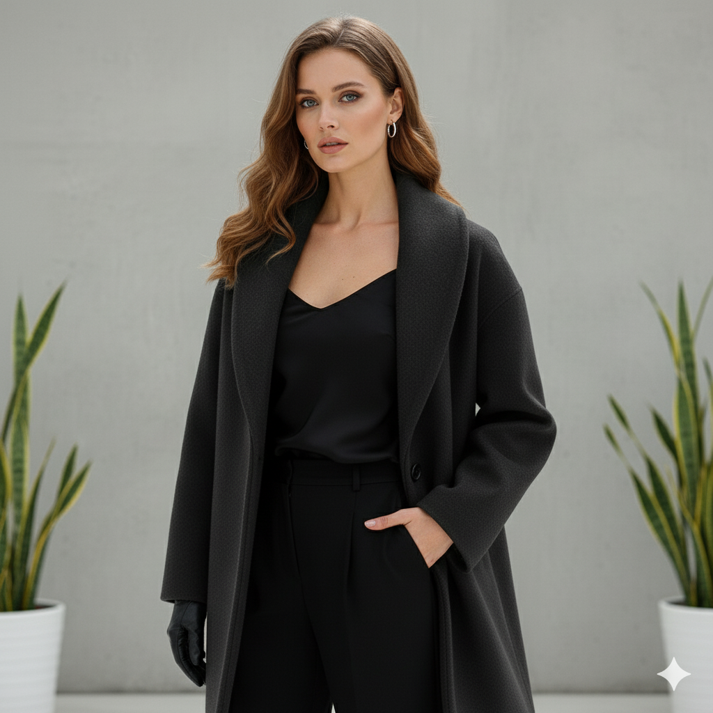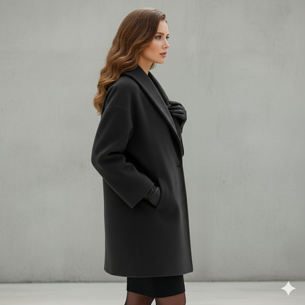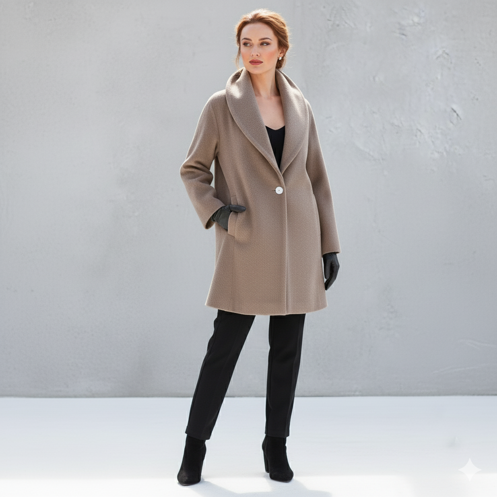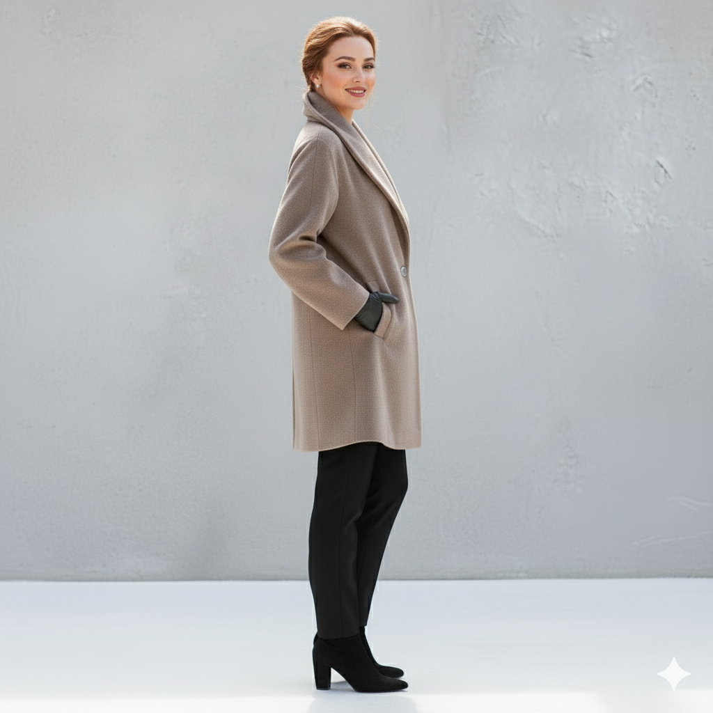 Der Damen Wollmantel Figurbetont Elegant überzeugt mit klarer Linie und luxuriöser Schlichtheit. Das weiche Wollmischgewebe sorgt für angenehme Wärme, während der taillierte Schnitt die Silhouette edel betont. Perfekt für stilvolle Auftritte – jetzt entdecken und verlieben!