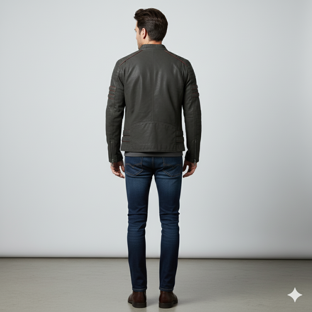 Herren Bikerjacke aus Veganleder mit Stehkragen | Herbst Winter