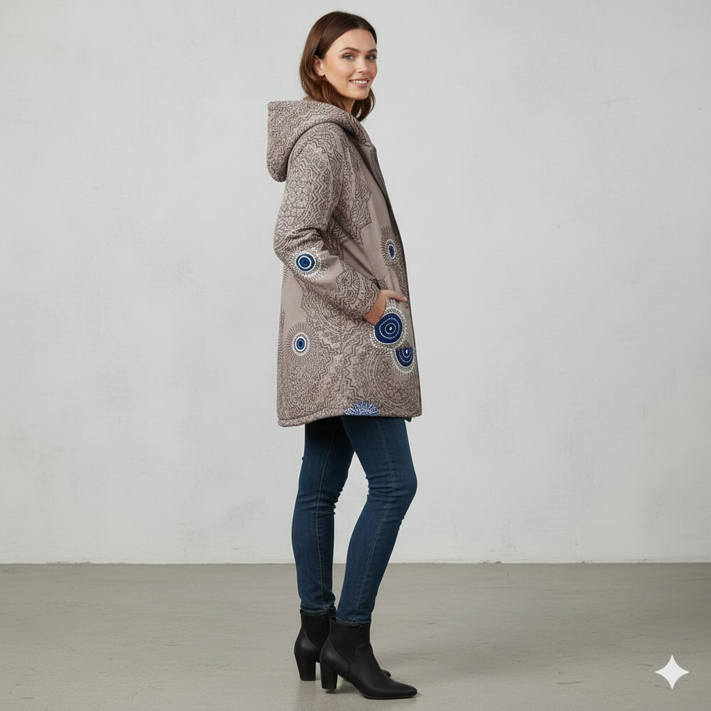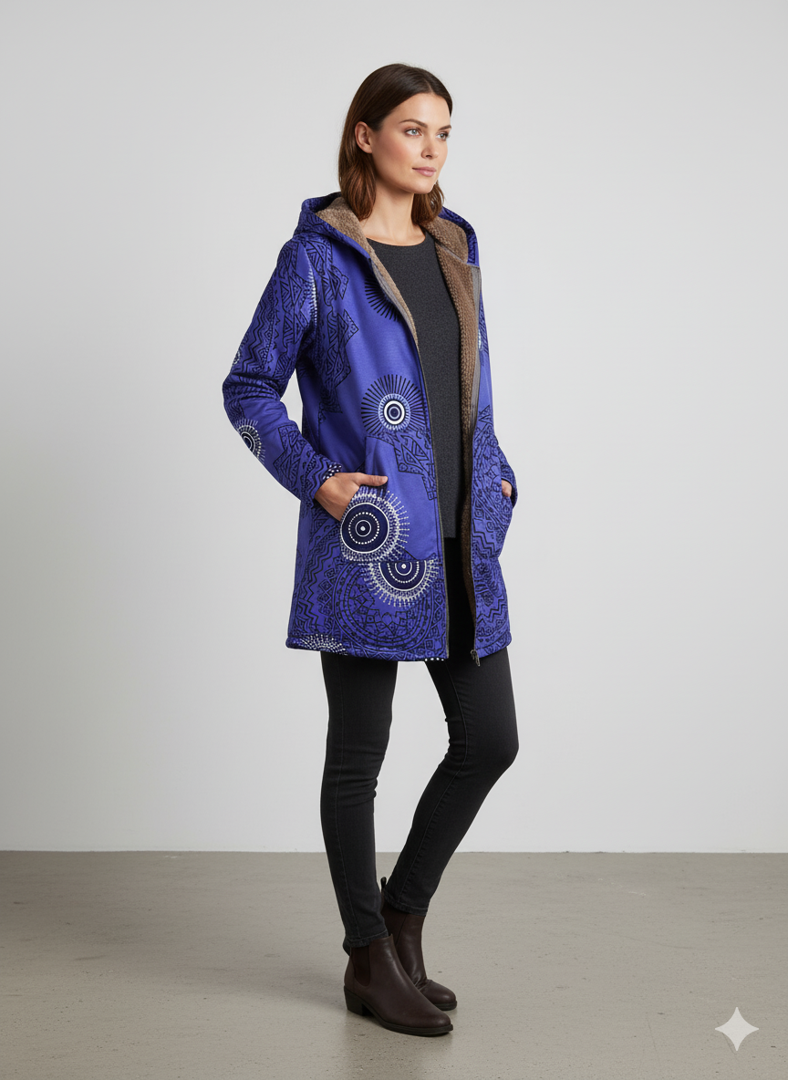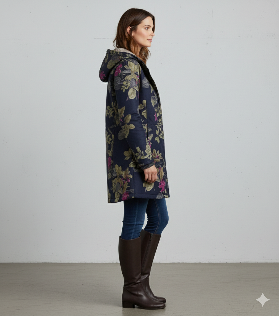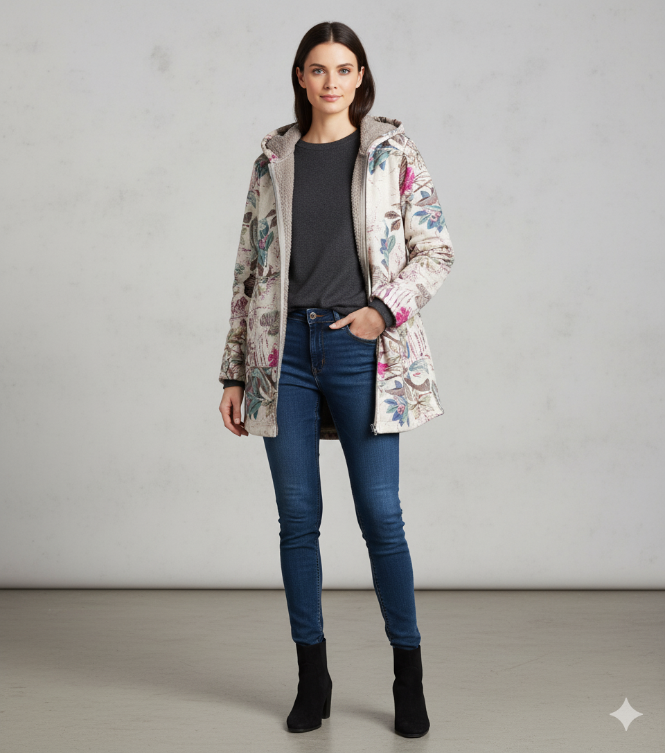 Die Damen Fleecejacke mit Kapuze kombiniert kuschelweichen Komfort mit stilvollem Design. Das flauschige Innenfutter hält angenehm warm, während der feminine Schnitt und das florale Muster für einen modernen Look sorgen. Perfekt für gemütliche Herbsttage – jetzt entdecken und wohlfühlen!