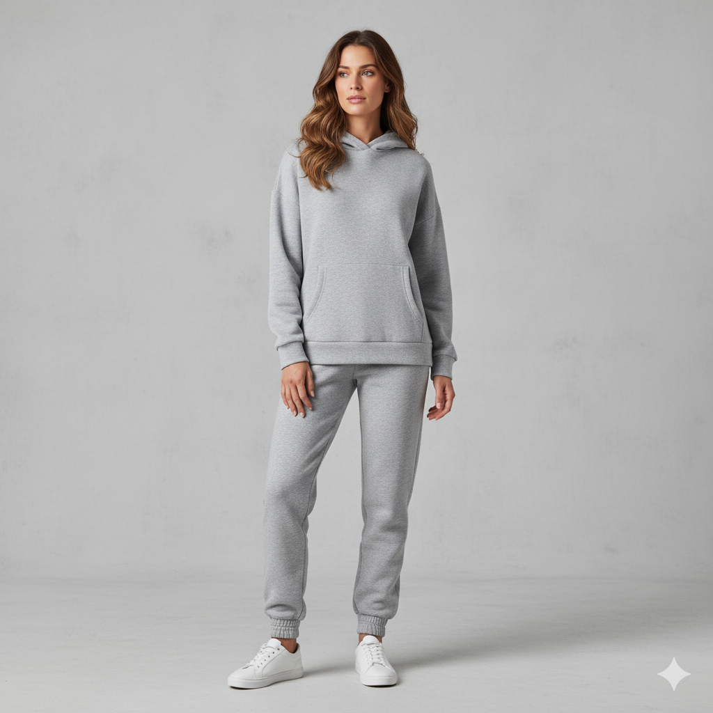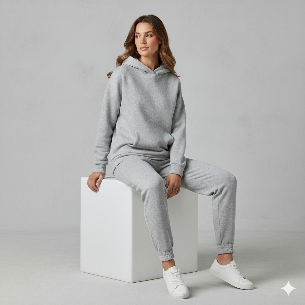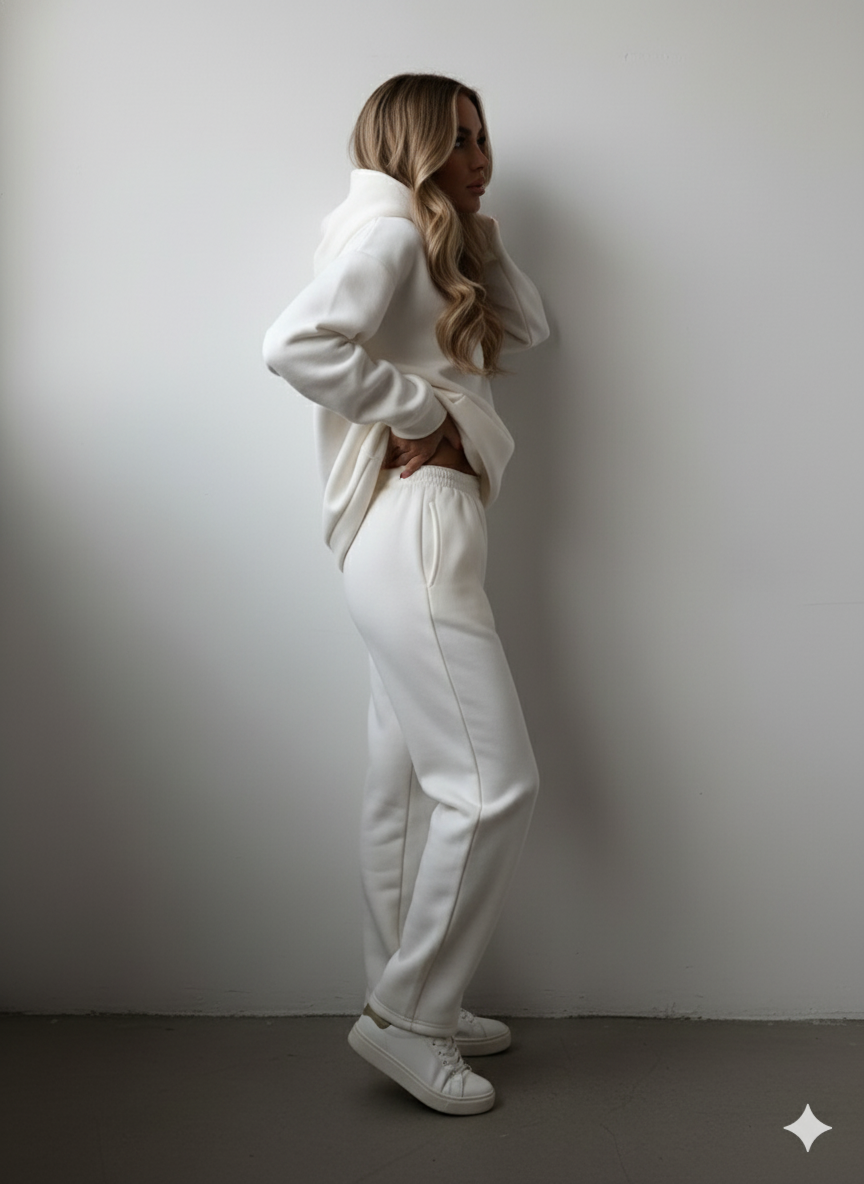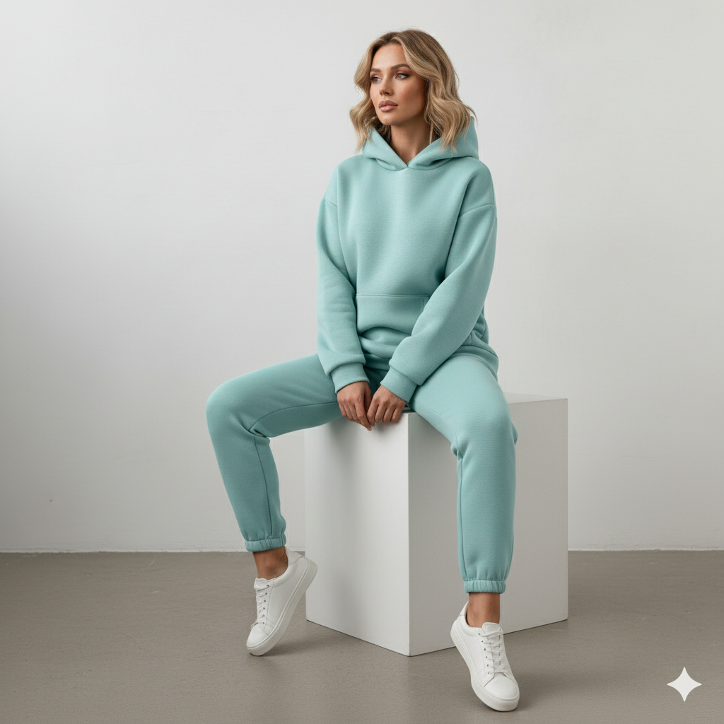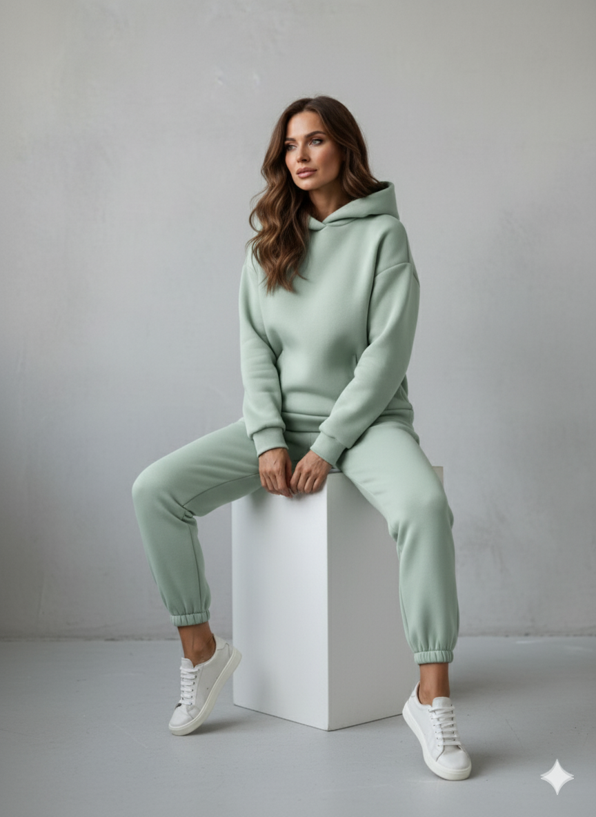 Erleben Sie das ultimative Gefühl von Wohlbefinden und lässigem Stil mit unserem warmen Damen Hoodie Zweiteiler. Dieses Ensemble ist Ihr neues Go-to-Outfit für die kühlen Tage und vereint einen kuscheligen Kapuzenpullover mit einer passenden Hose. Das hochwertige Material, wie z.B. weicher Cord, bietet nicht nur ein angenehmes Tragegefühl und Flexibilität, sondern hält Sie auch zuverlässig warm. Ideal für entspannte Tage zu Hause, den Wochenendausflug oder stylische Freizeitaktivitäten. Ein unschlagbares Set für alle, die Komfort lieben, aber nicht auf eine moderne Optik verzichten wollen!