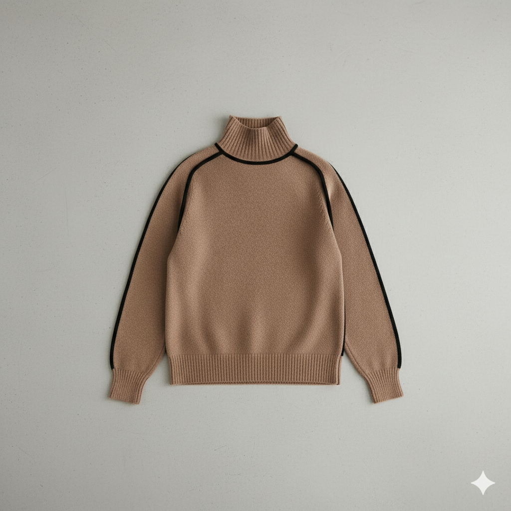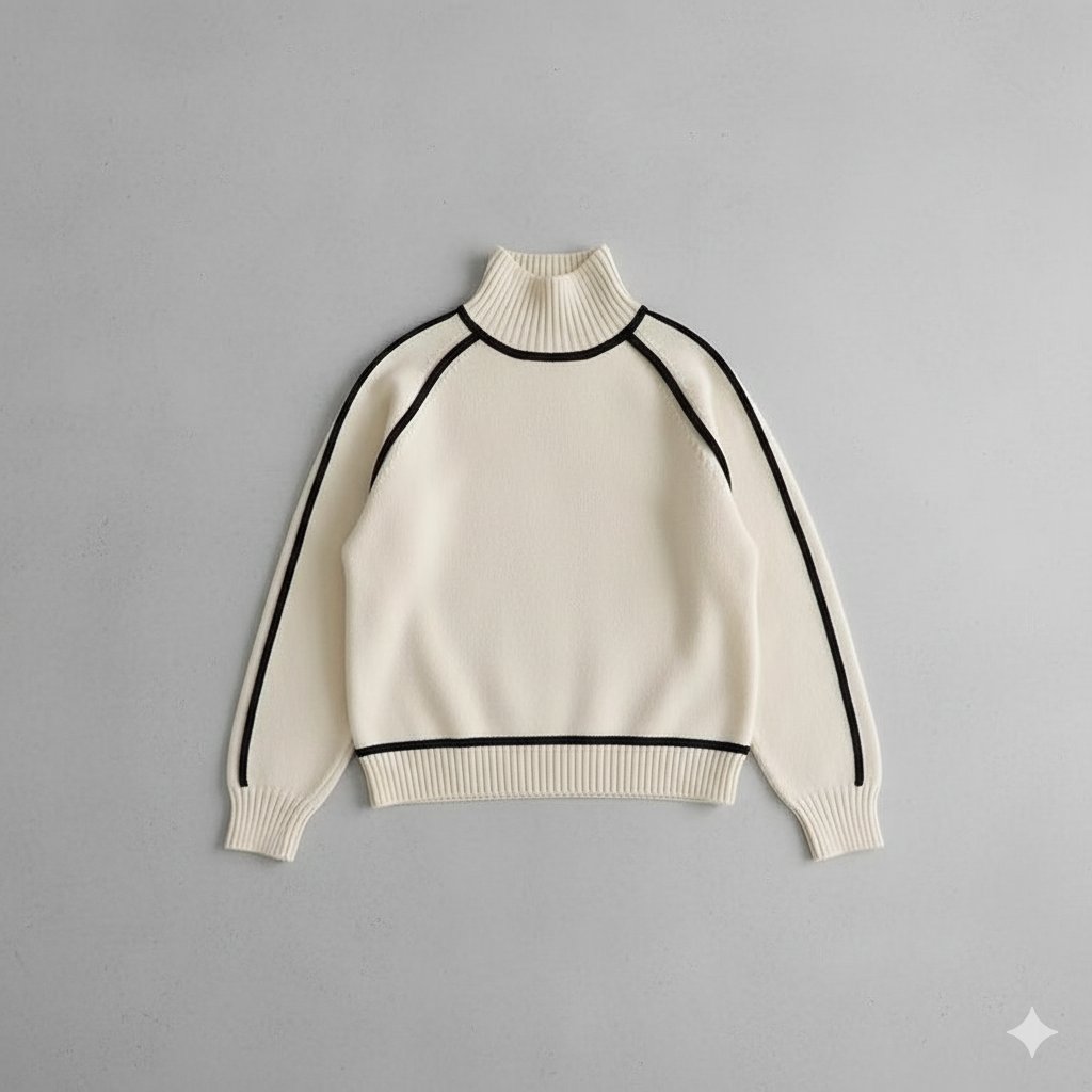 Der Damenpullover mit Stehkragen überzeugt durch schlichte Eleganz und gemütlichen Tragekomfort. Der feine Strick mit kontrastierenden Linien verleiht dem Design einen modernen Touch, während der weiche Stoff angenehm warm hält. Perfekt für stilvolle Looks – jetzt entdecken und verlieben!