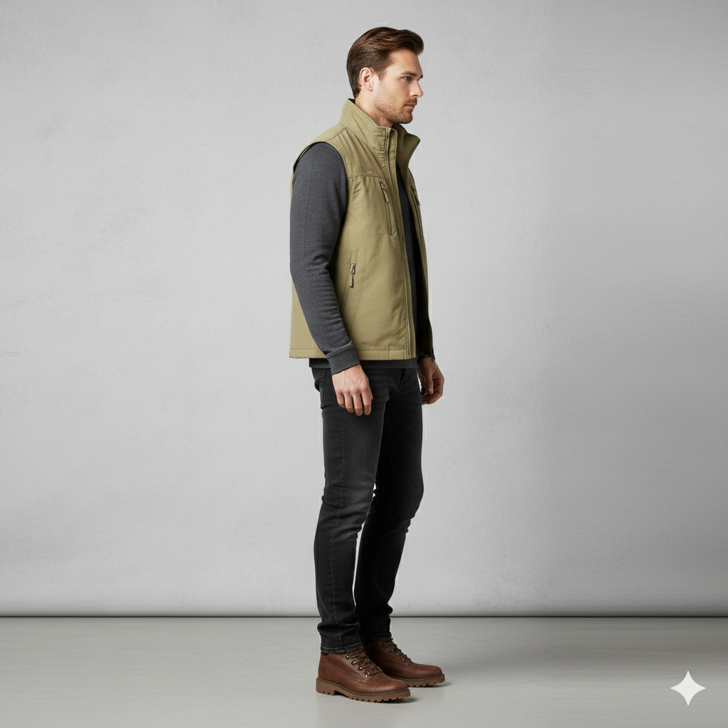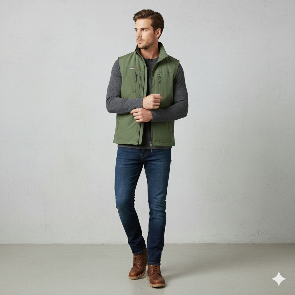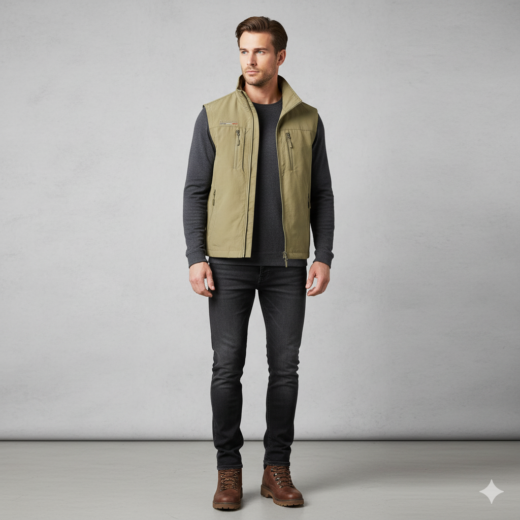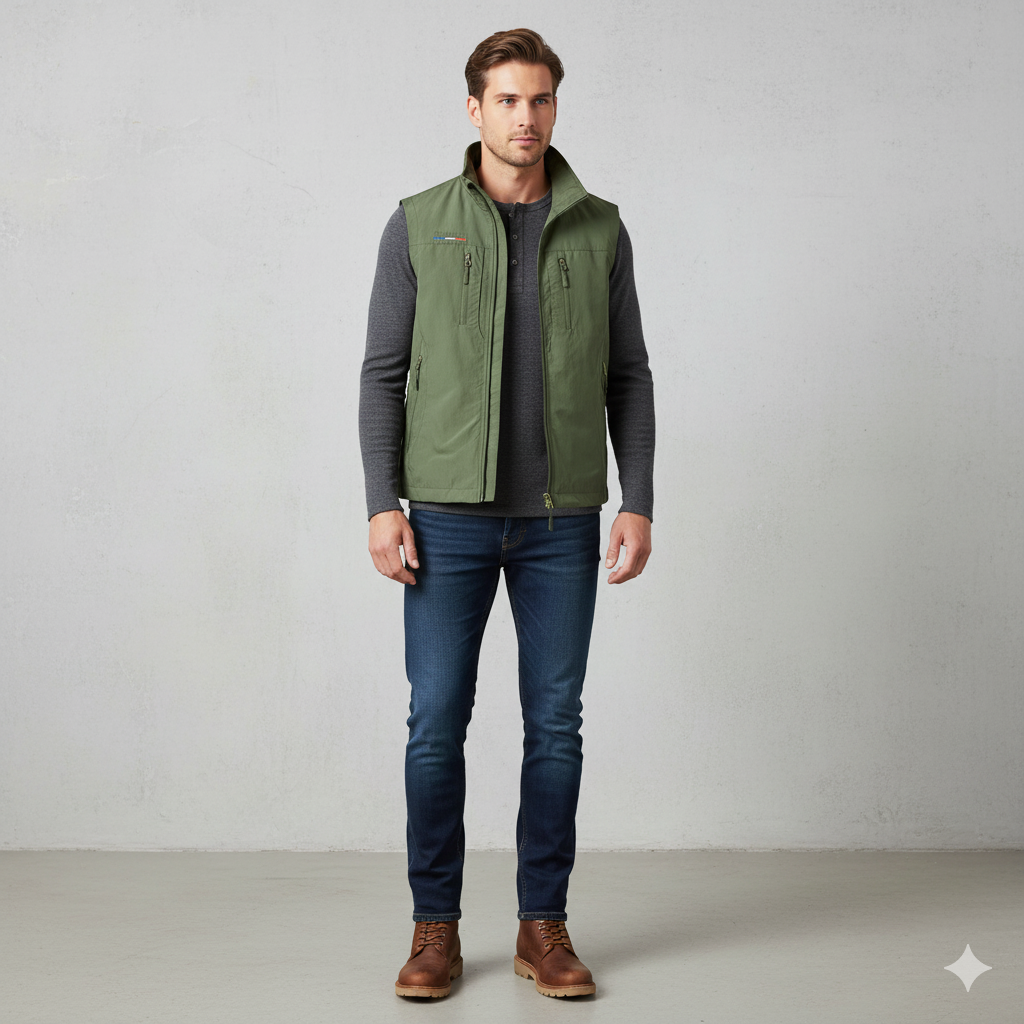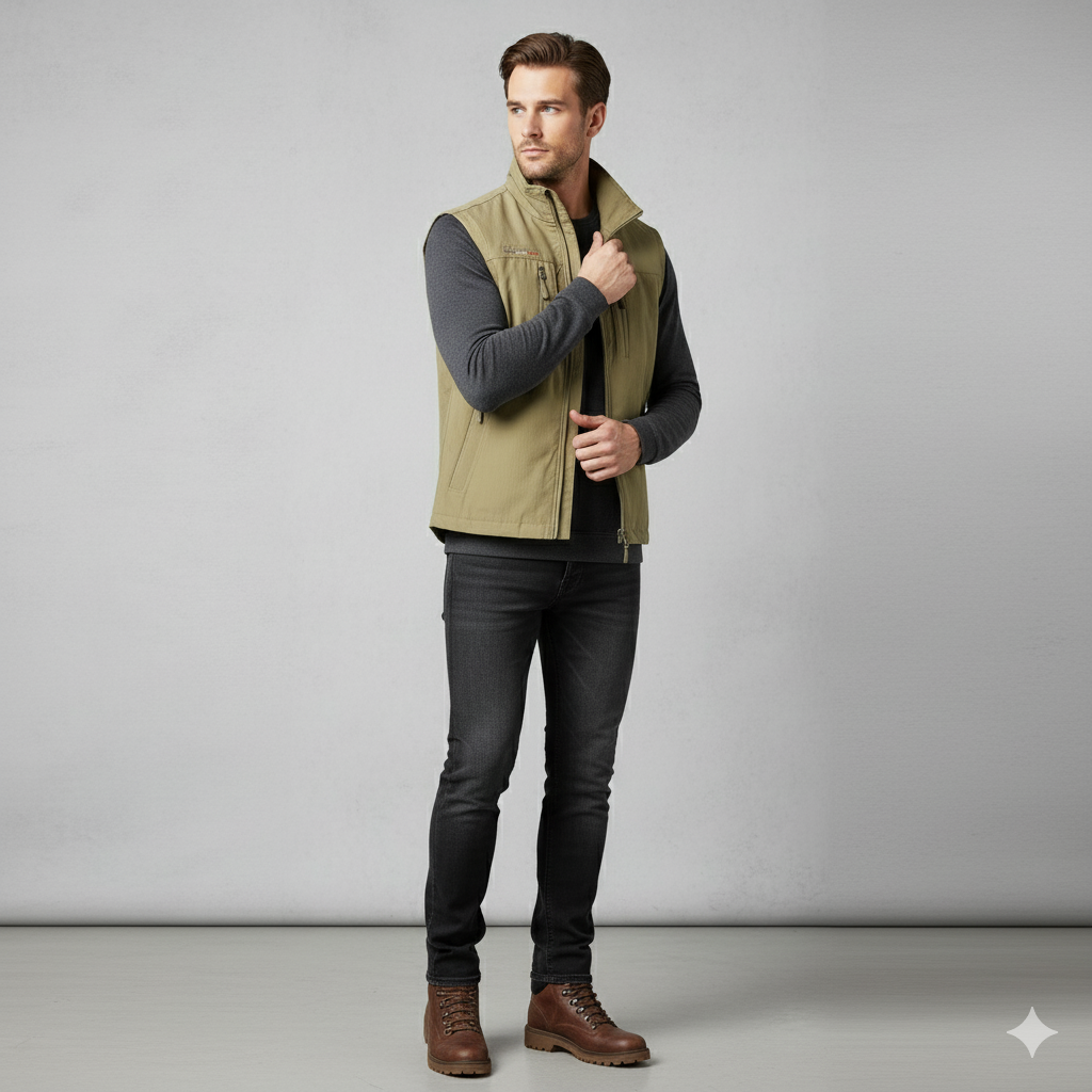 Die Herren Outdoor Weste mit Taschen bietet Funktion und Stil in einem. Das leichte, robuste Material und die vielen Taschen machen sie zum idealen Begleiter für unterwegs. Lässig, praktisch und perfekt für die Übergangszeit – gleich ausprobieren!