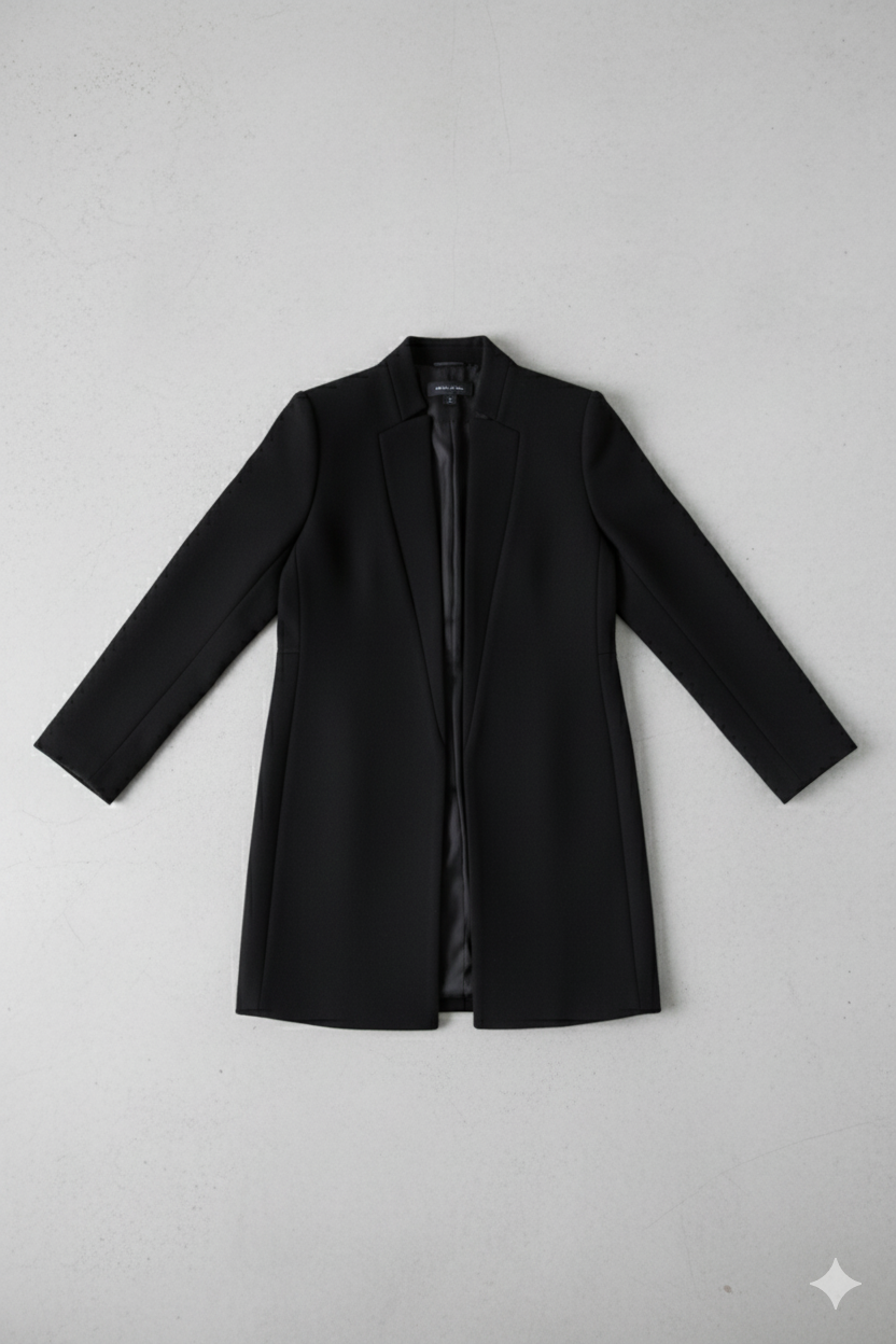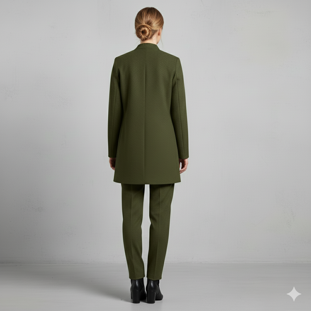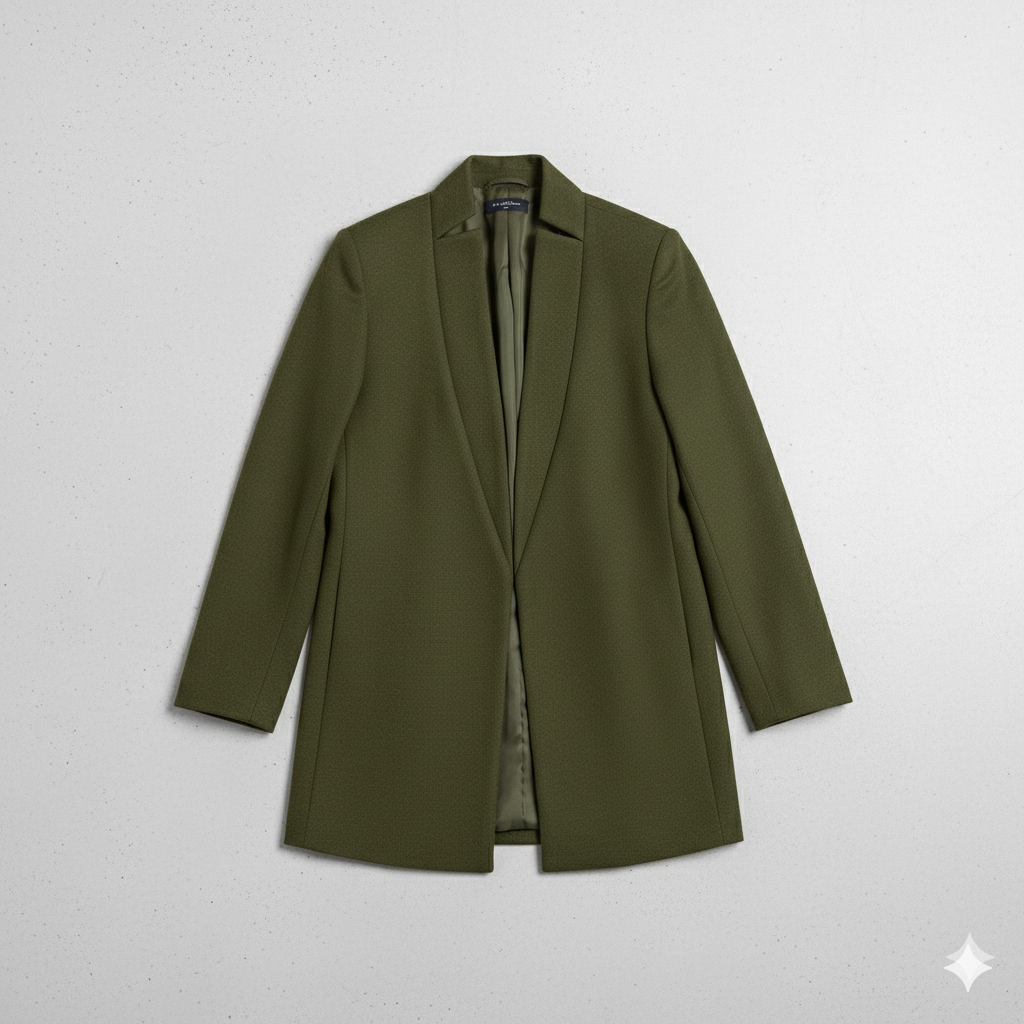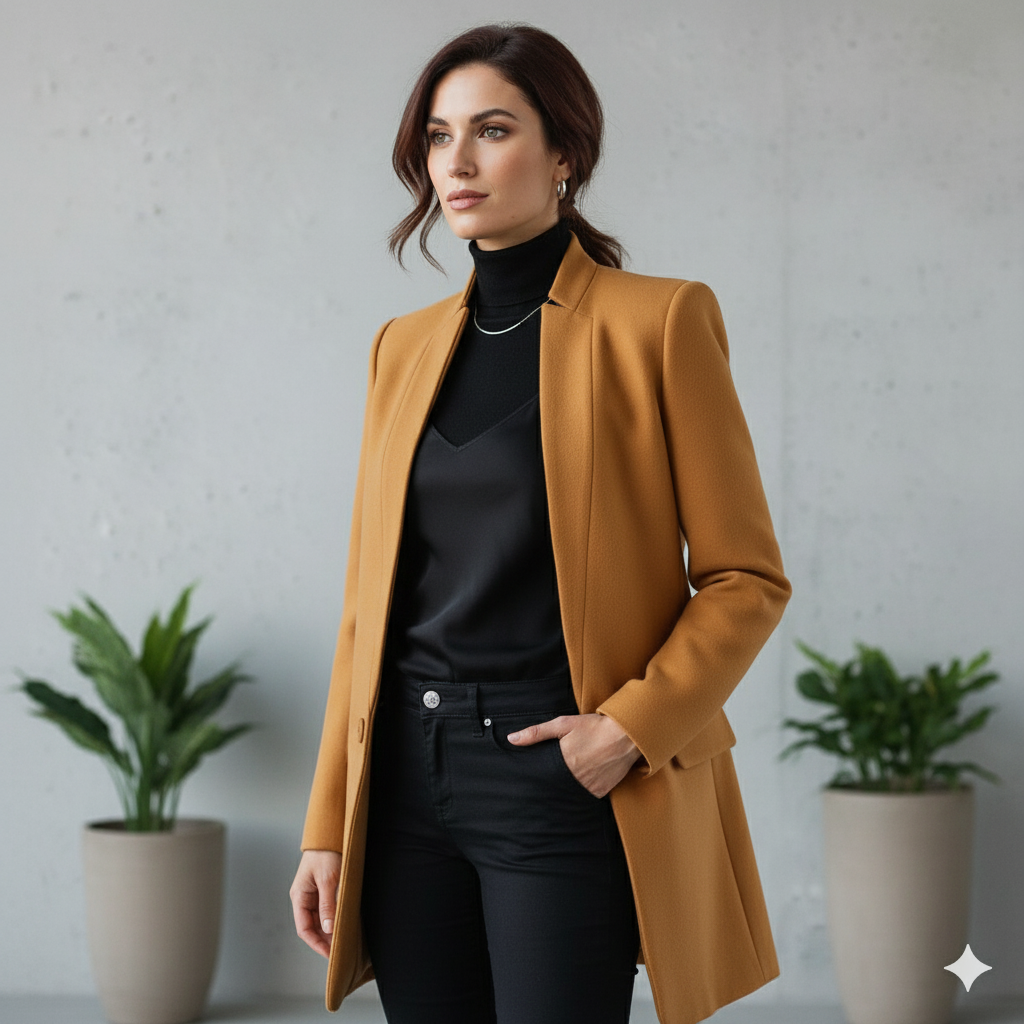 Der Damen Wollmantel mit Stehkragen überzeugt durch seine klare Linie und zeitlose Eleganz. Das hochwertige Wollmischgewebe sorgt für angenehme Wärme, während der gerade Schnitt und der dezente Kragen einen modernen, minimalistischen Look schaffen. Perfekt für Business und Alltag – jetzt entdecken und stilvoll durch die Saison gehen!
