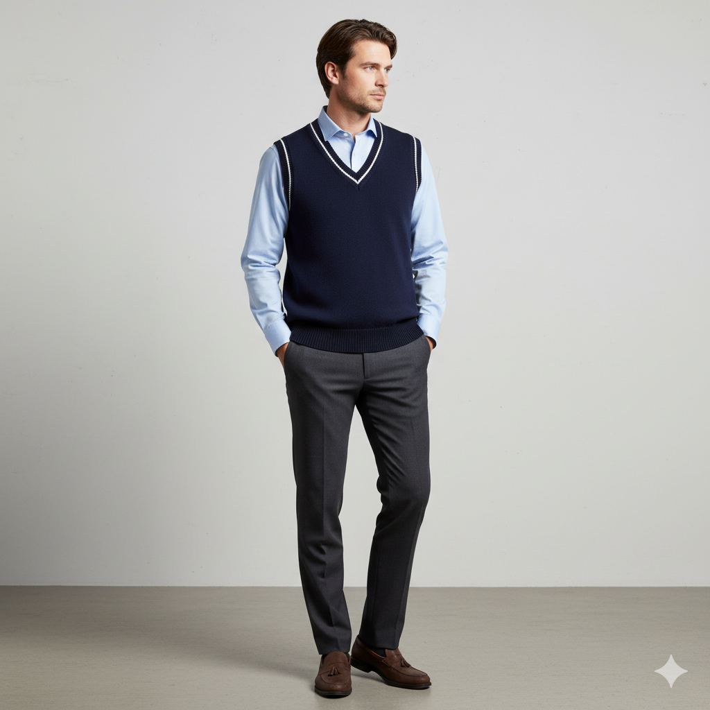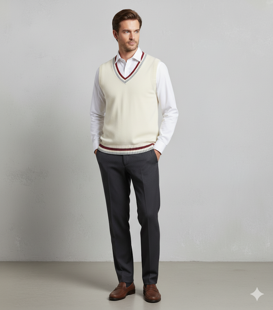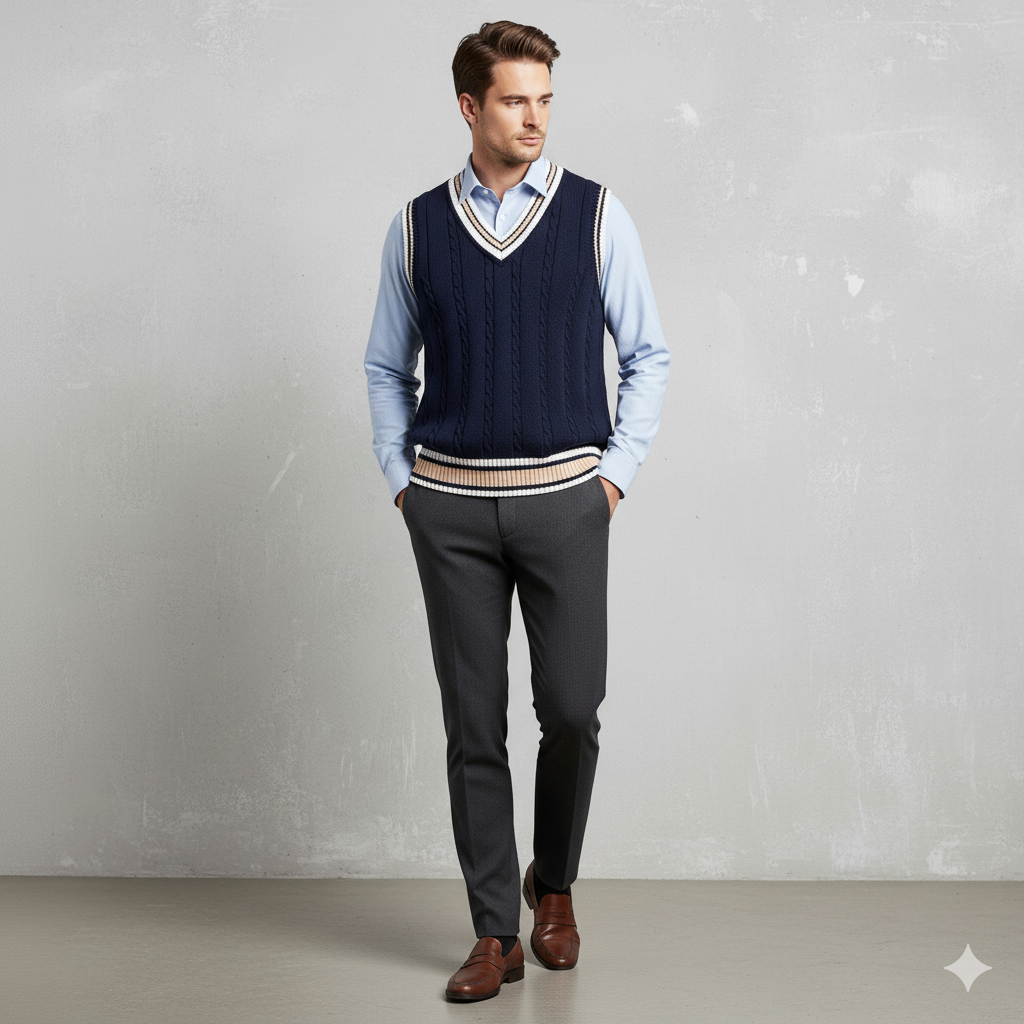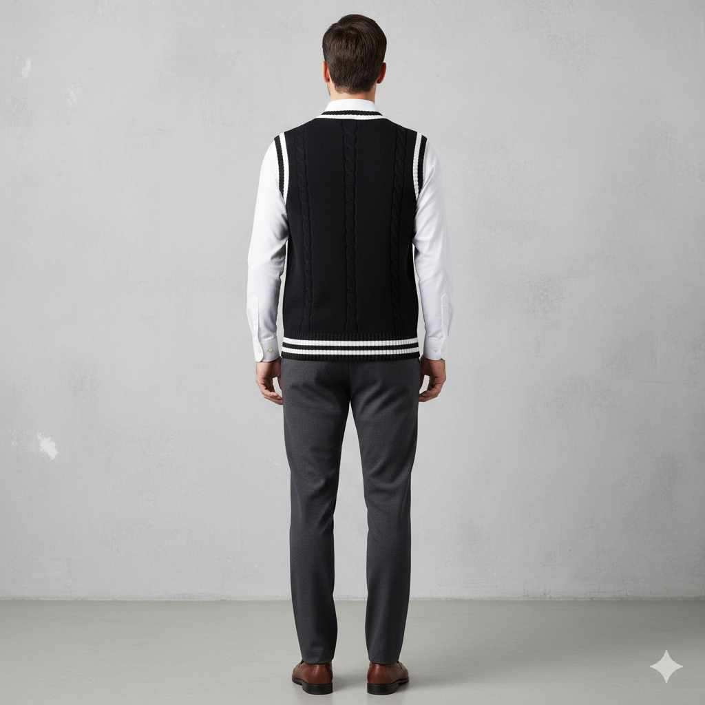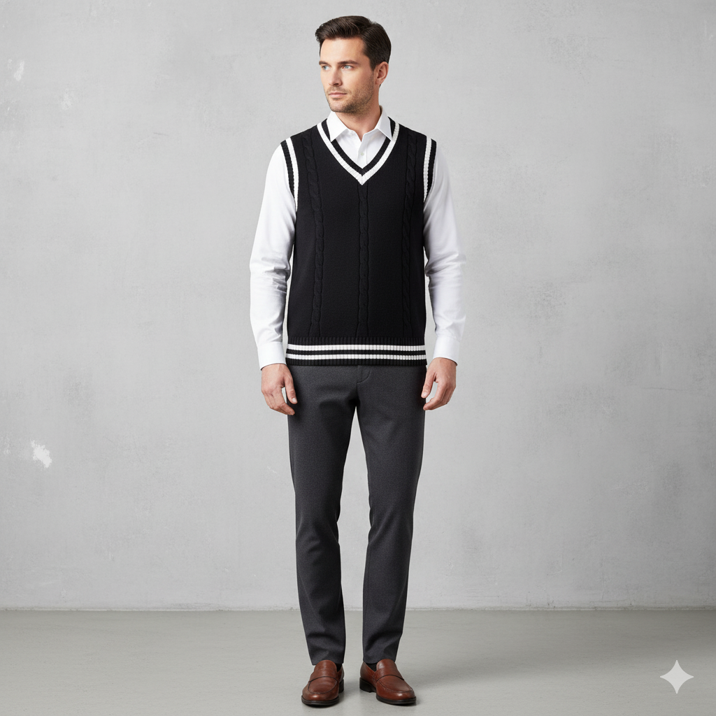 Die Herren Strickweste im College Stil bringt Retro-Charme in deinen Look. Der klassische V-Ausschnitt und die markanten Streifen sorgen für sportliche Eleganz, während die Baumwolle angenehm weich und atmungsaktiv ist. Perfekt für Herbst und Freizeit – gleich ausprobieren!
