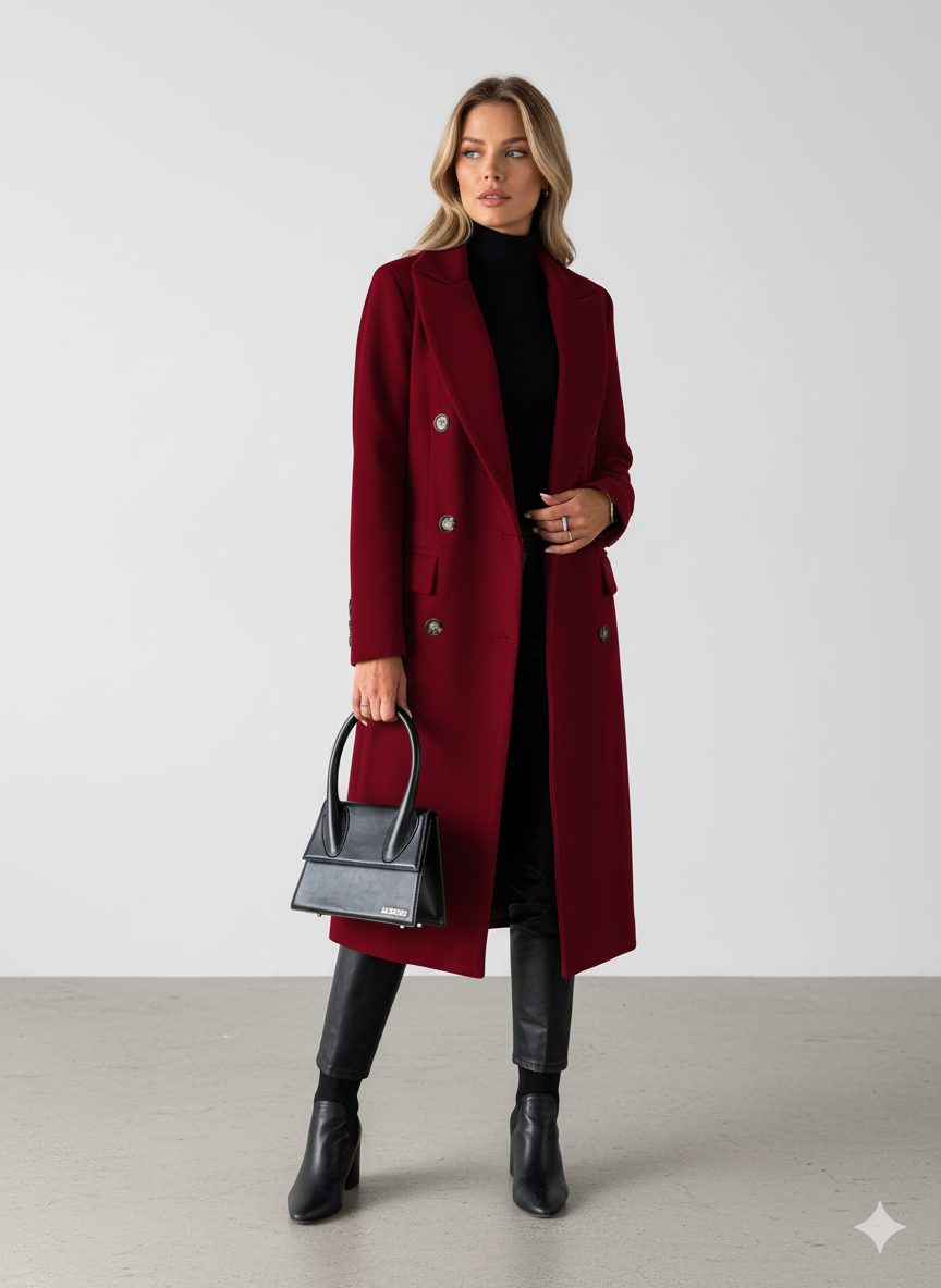 Damen Mantel mit Reverskragen | Doppelreihig & Elegant | Herbst/Winter