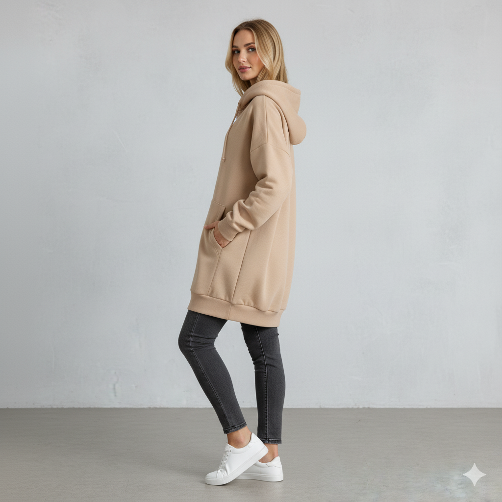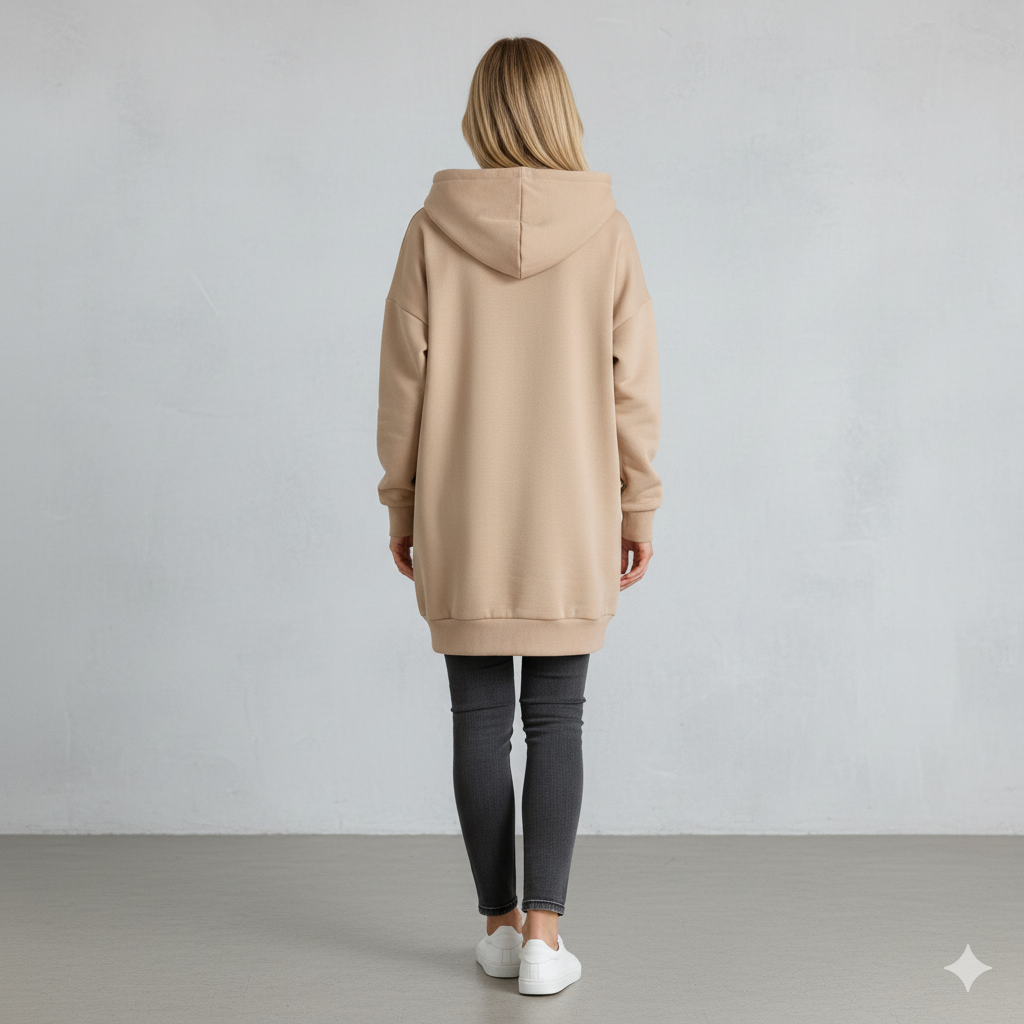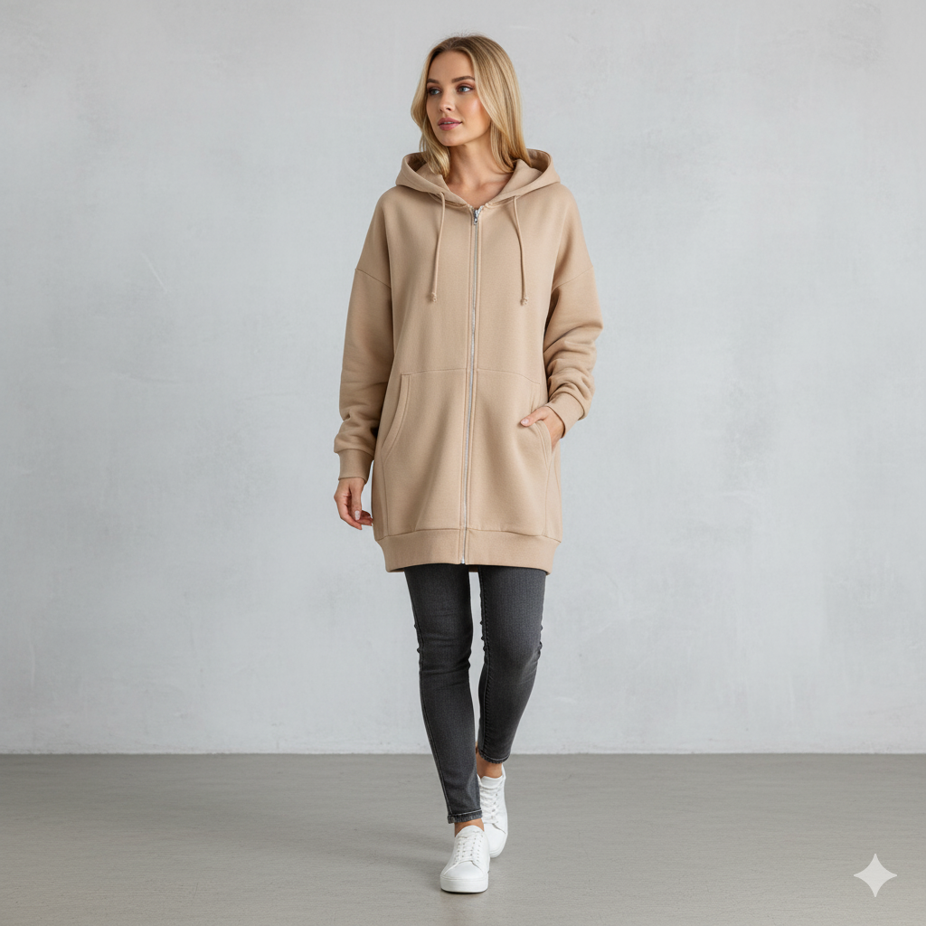 Langer Damen Hoodie mit Reißverschluss | Warm & Bequem für Winter