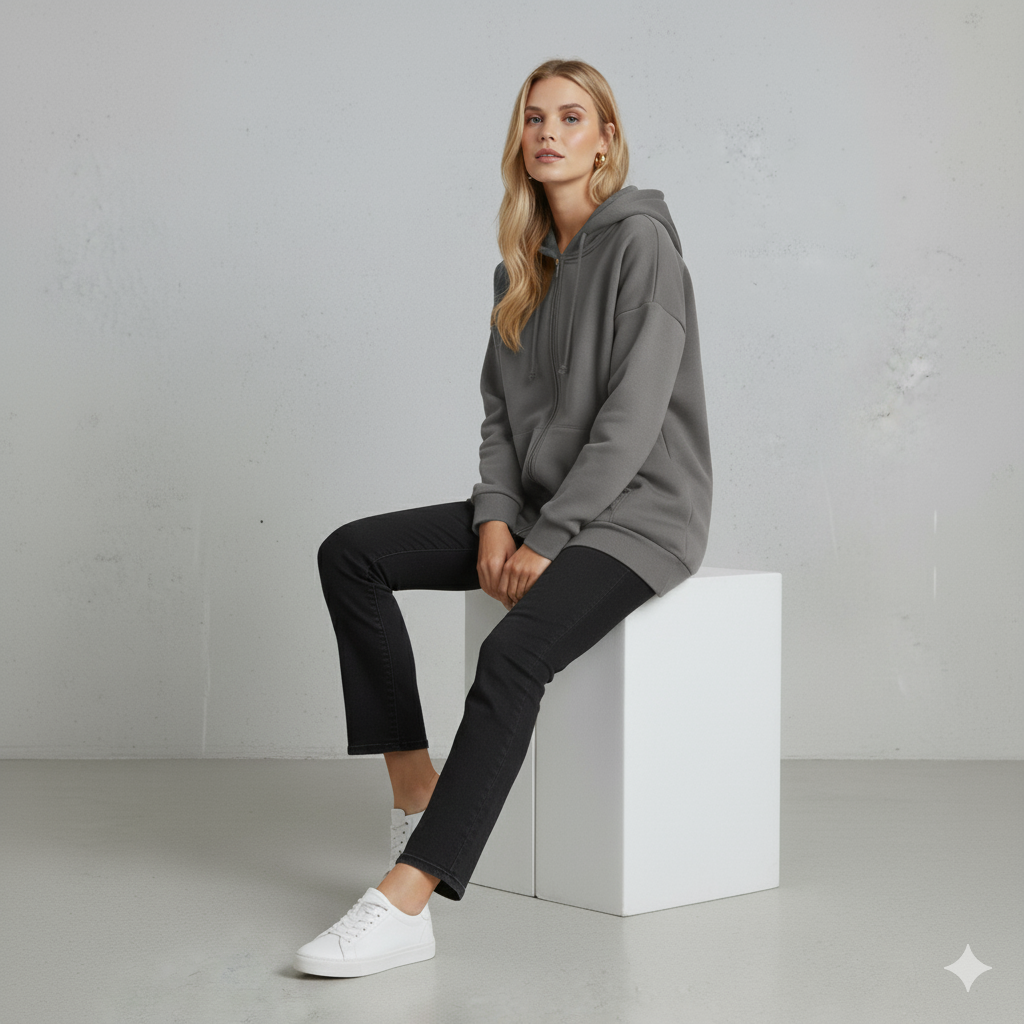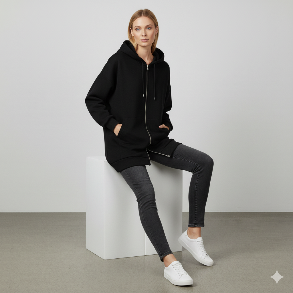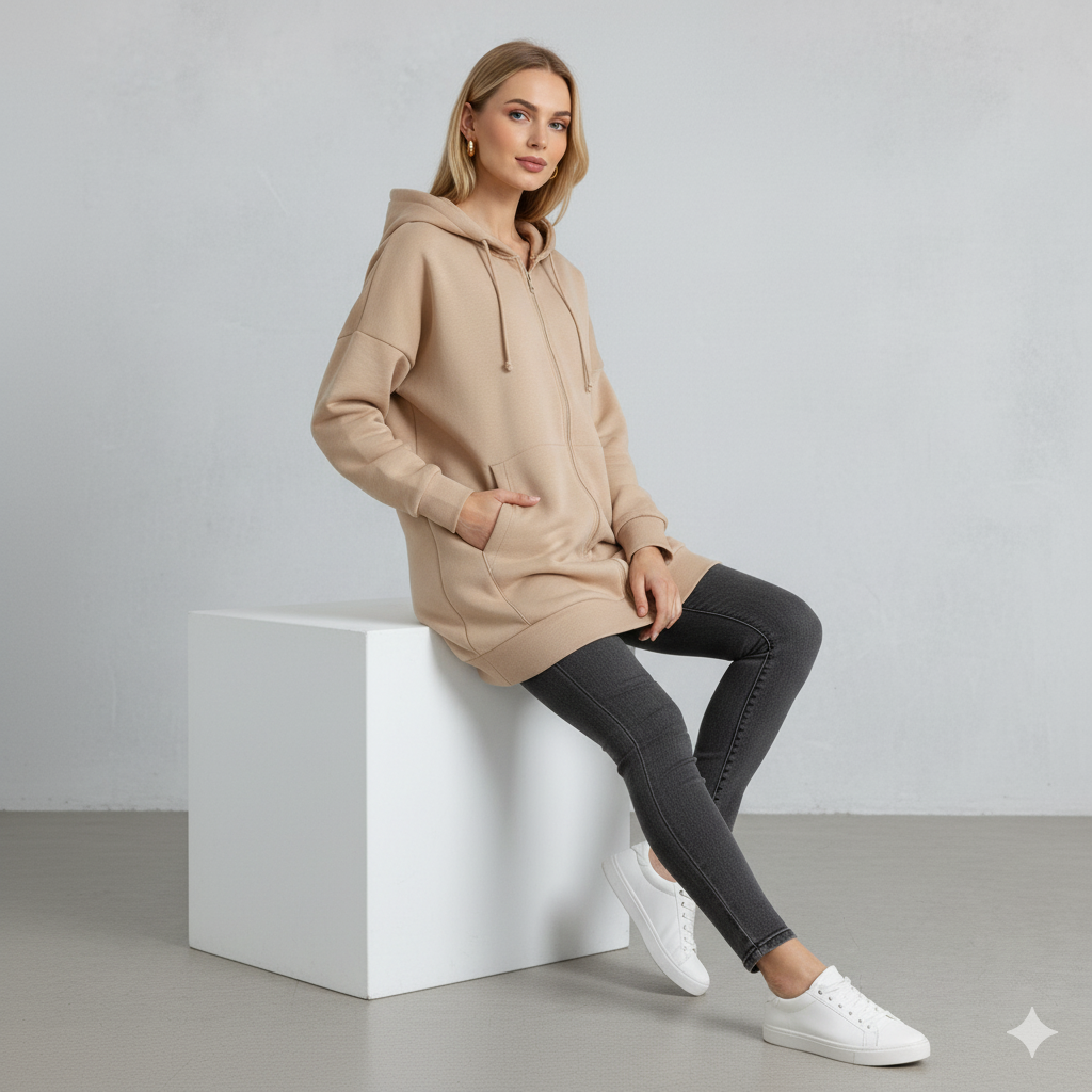 Langer Damen Hoodie mit Reißverschluss | Warm & Bequem für Winter