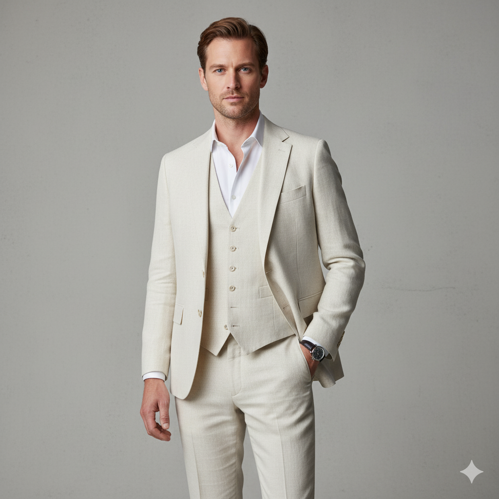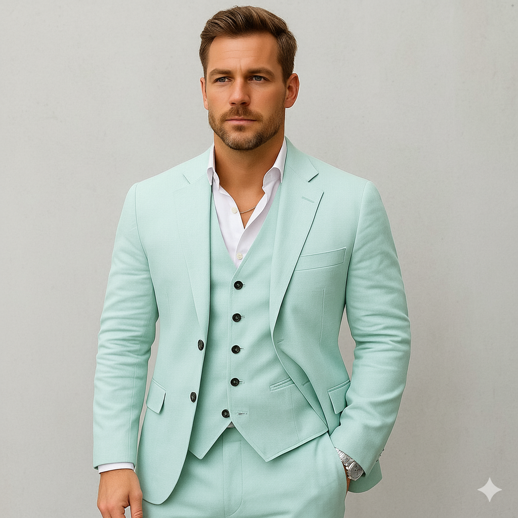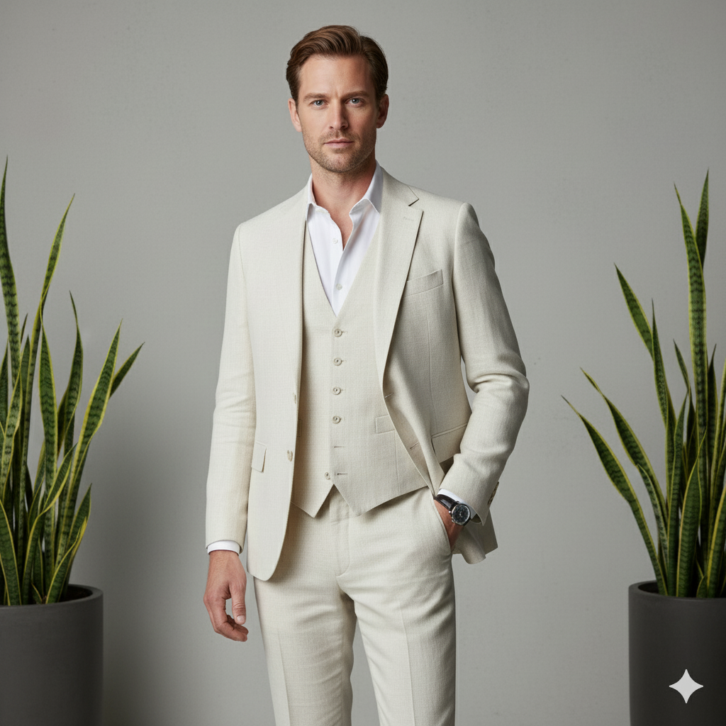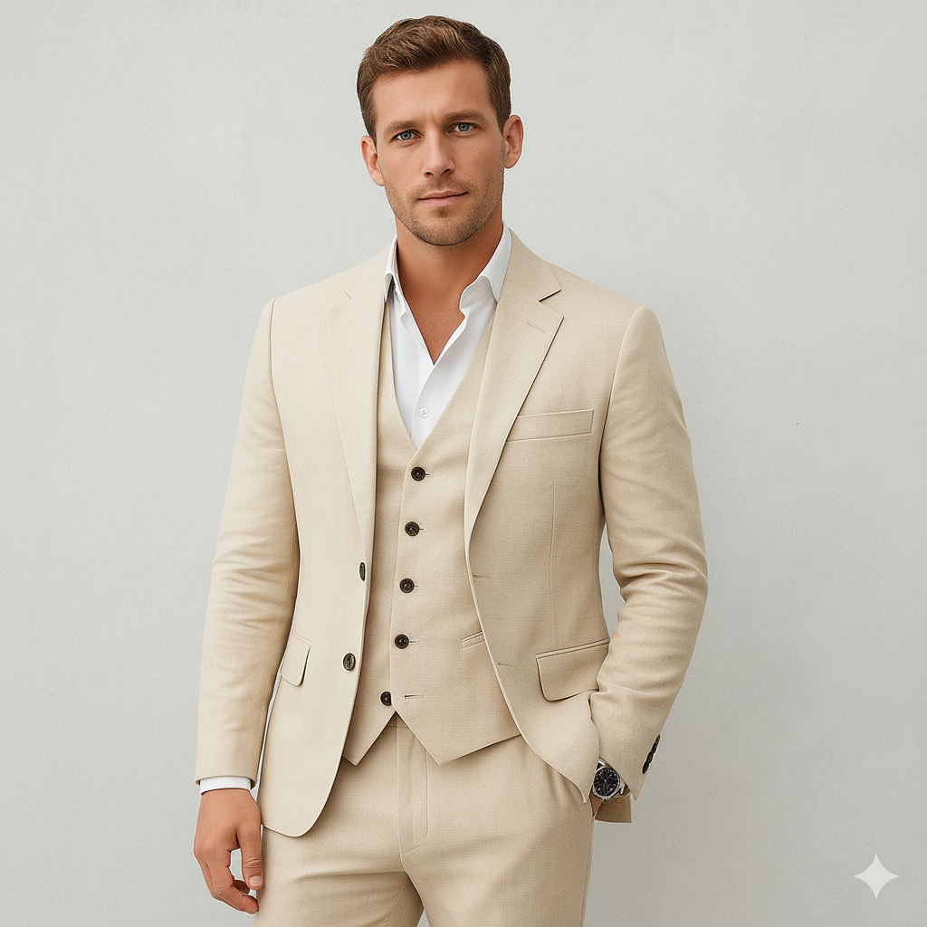 Der leichte Herrenanzug aus Leinen kombiniert sommerliche Eleganz mit höchstem Tragekomfort. Das atmungsaktive Material sorgt auch an warmen Tagen für ein angenehmes Gefühl, während der Slim-Fit-Schnitt eine moderne Silhouette betont. Jetzt entdecken und stilvoll durch den Sommer gehen!