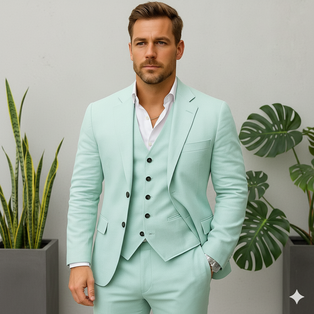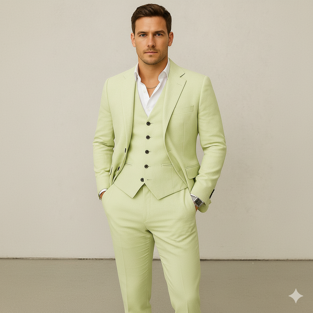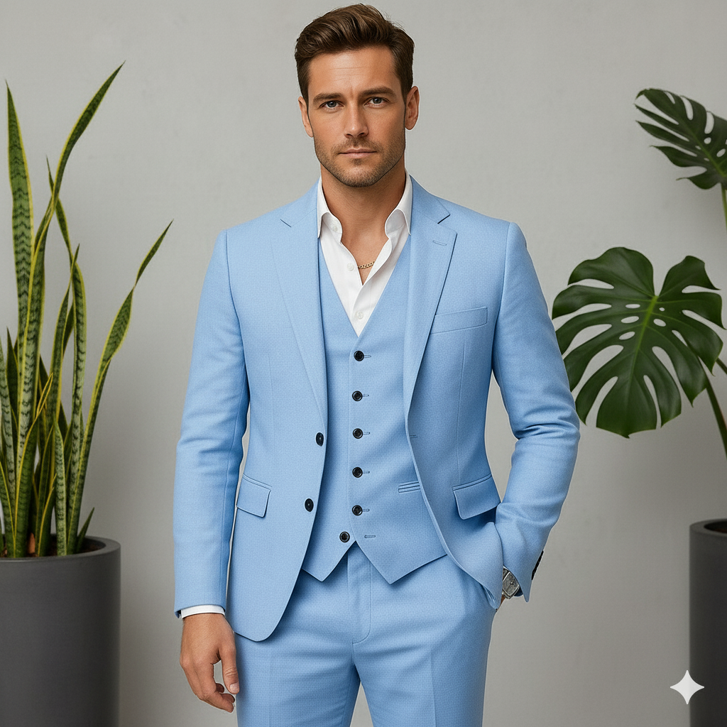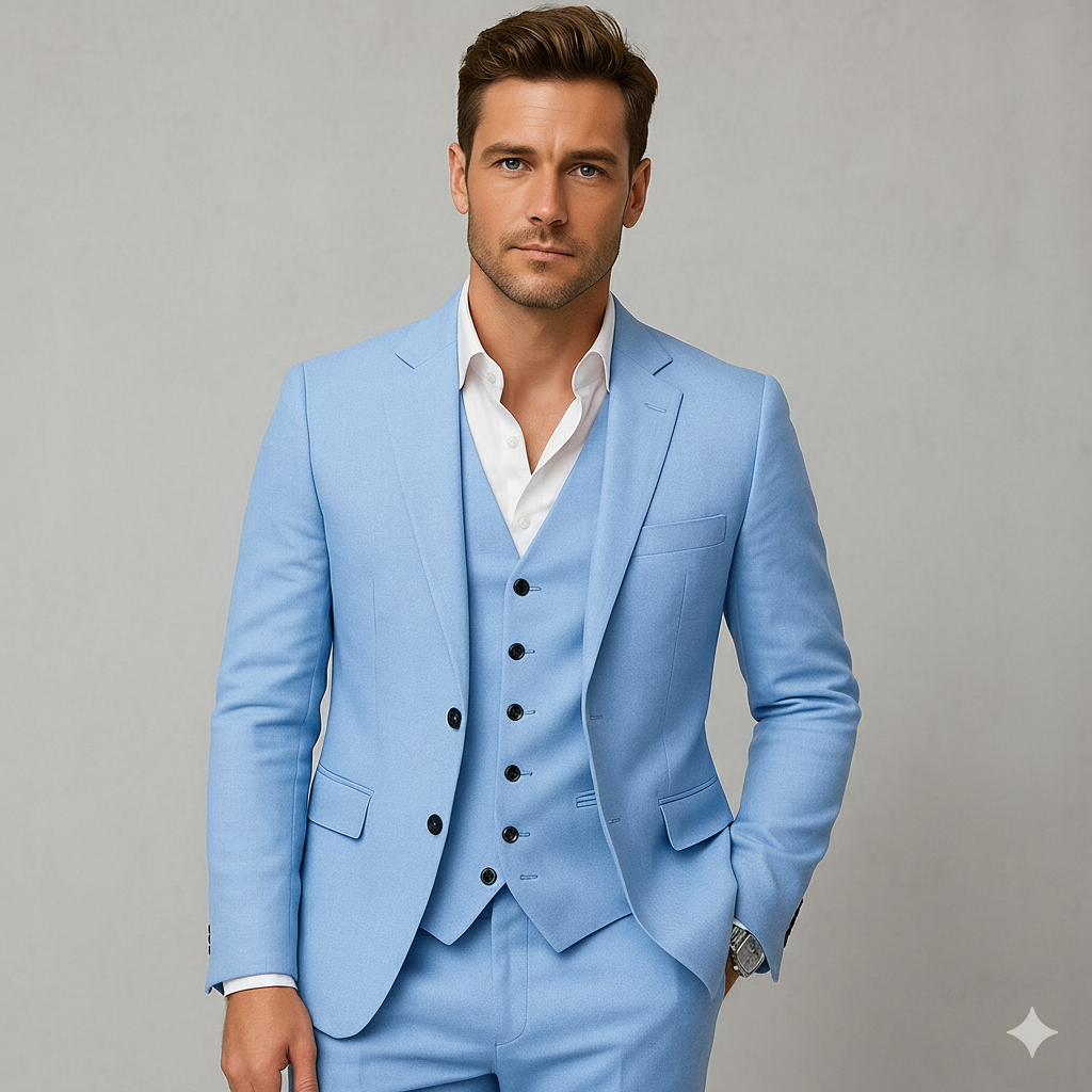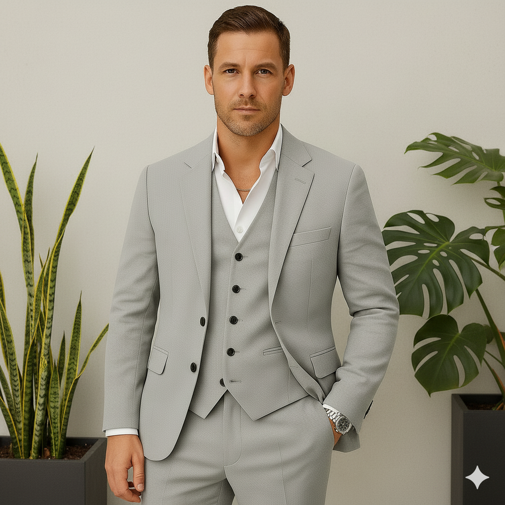 Der leichte Herrenanzug aus Leinen kombiniert sommerliche Eleganz mit höchstem Tragekomfort. Das atmungsaktive Material sorgt auch an warmen Tagen für ein angenehmes Gefühl, während der Slim-Fit-Schnitt eine moderne Silhouette betont. Jetzt entdecken und stilvoll durch den Sommer gehen!