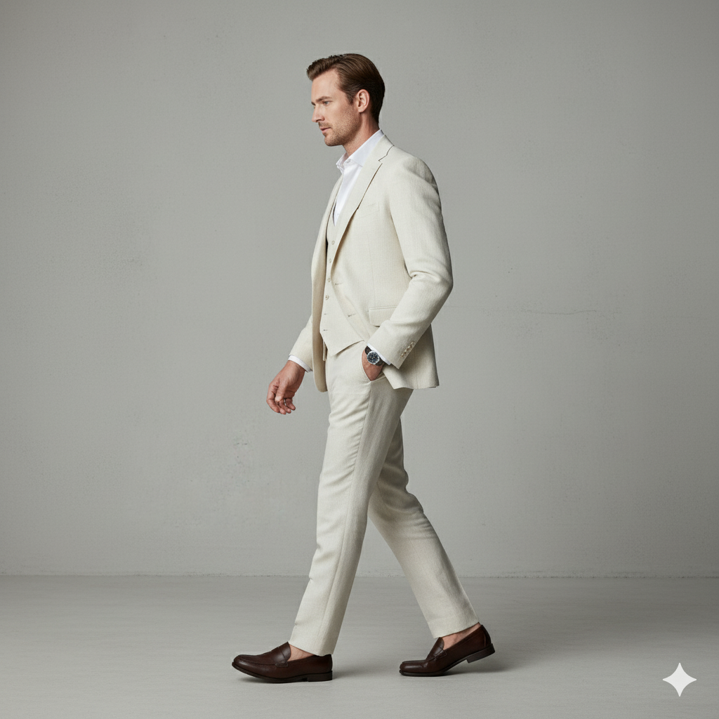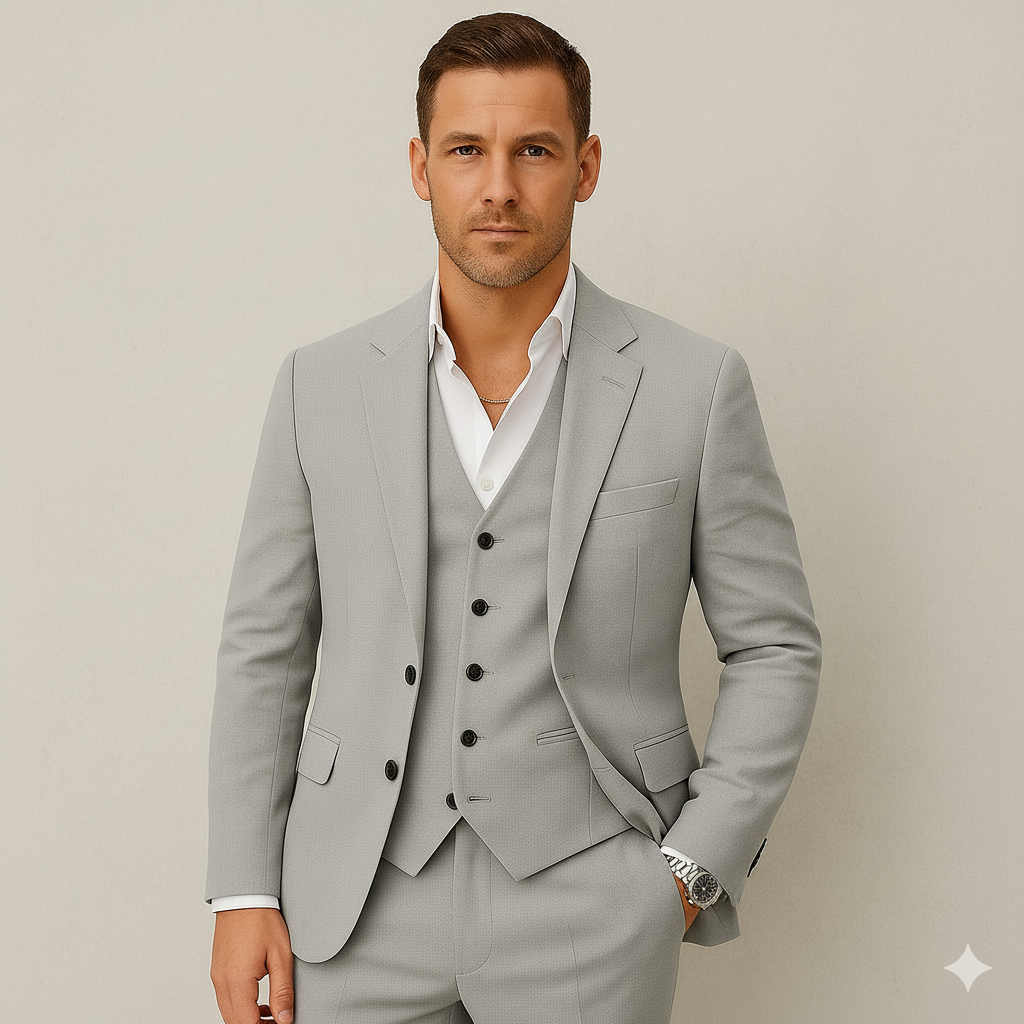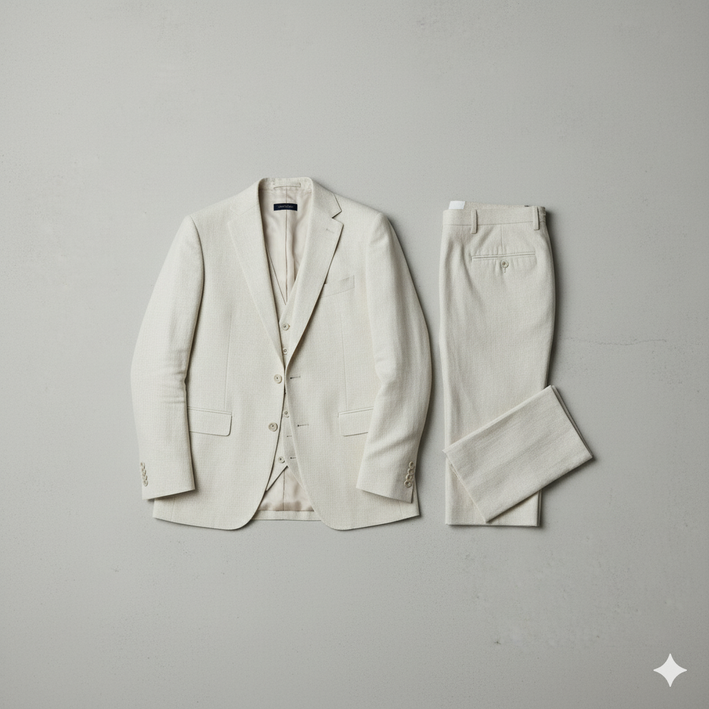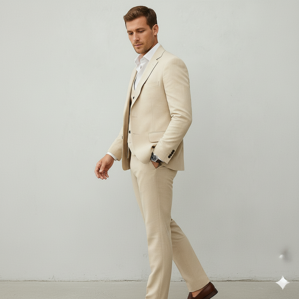 Der leichte Herrenanzug aus Leinen kombiniert sommerliche Eleganz mit höchstem Tragekomfort. Das atmungsaktive Material sorgt auch an warmen Tagen für ein angenehmes Gefühl, während der Slim-Fit-Schnitt eine moderne Silhouette betont. Jetzt entdecken und stilvoll durch den Sommer gehen!
